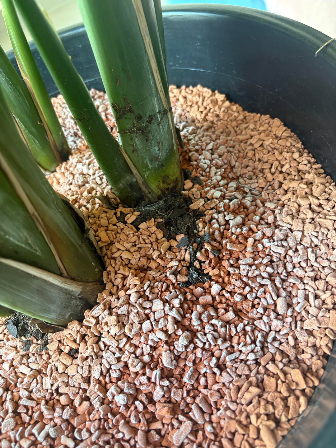 ich habe vor ca. zwei Monaten einige meiner Pflanzen in Seramis umgetopft. Anfangs lief alles problemlos, aber seit ein paar Wochen bemerke ich, dass manche Seramis-Körnchen an der Oberfläche einen weißen Belag bekommen. Der Belag lässt sich abkratzen.