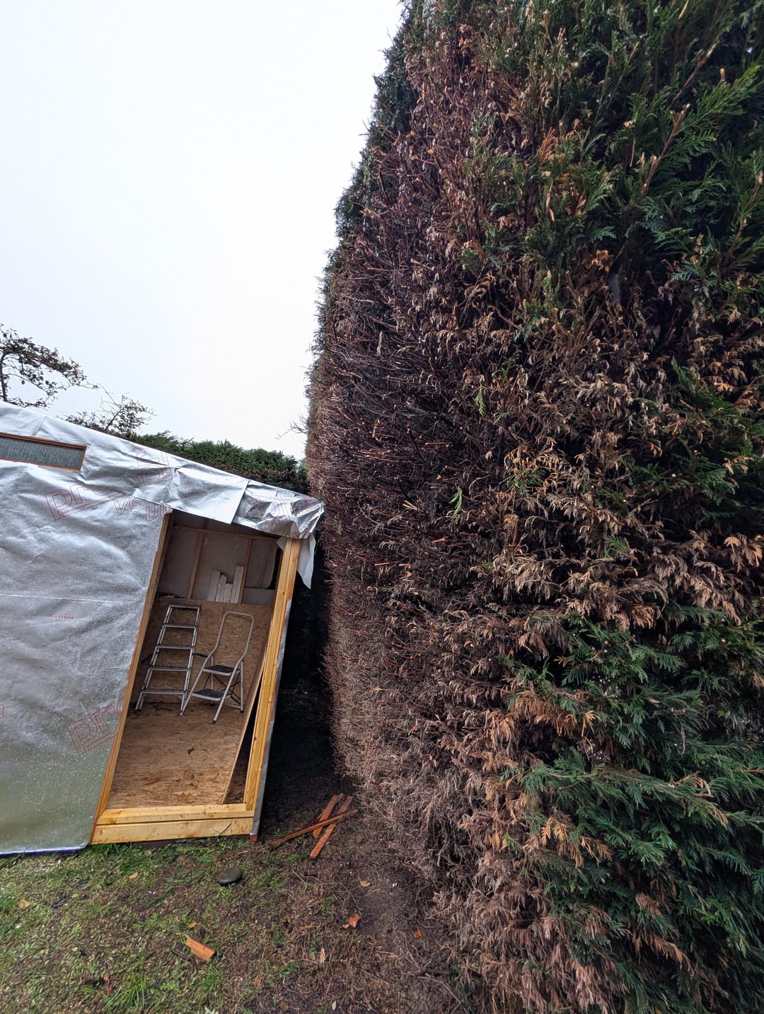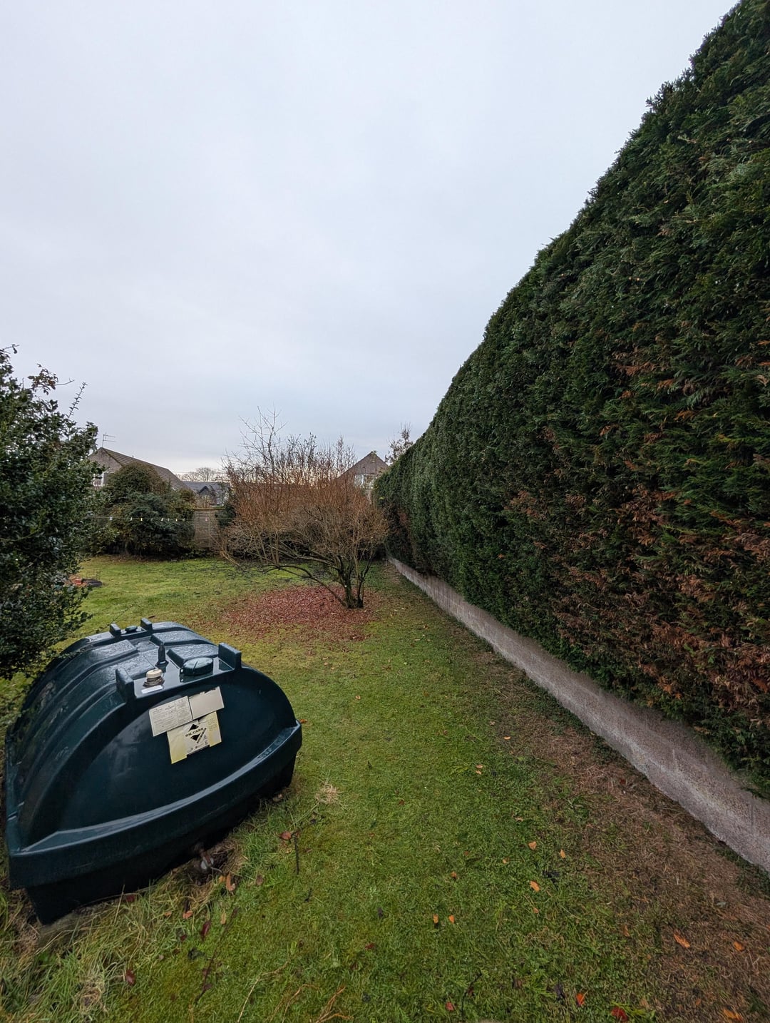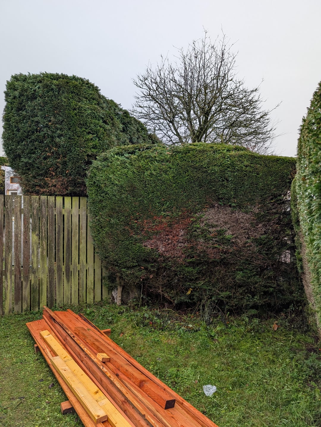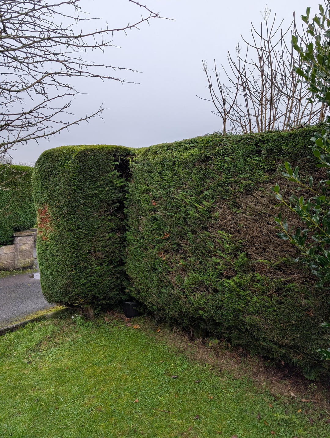 Sitz in Schottland, Angus. 2x Jungs mit der ganzen Ausrüstung (Leitern, Teleskop, Kettensägen, Anhänger) haben den ganzen Müll mitgenommen. Verbrachte knapp 4 Stunden. Bewusste braune Teile sind tot – das war schon so. Erforderlicher aggressiver Rückschnitt auf der bewachsenen Seite. Gesamtlänge ca. 35 Meter. In einigen Gebieten beträgt die Höhe mehr als 10 Fuß.