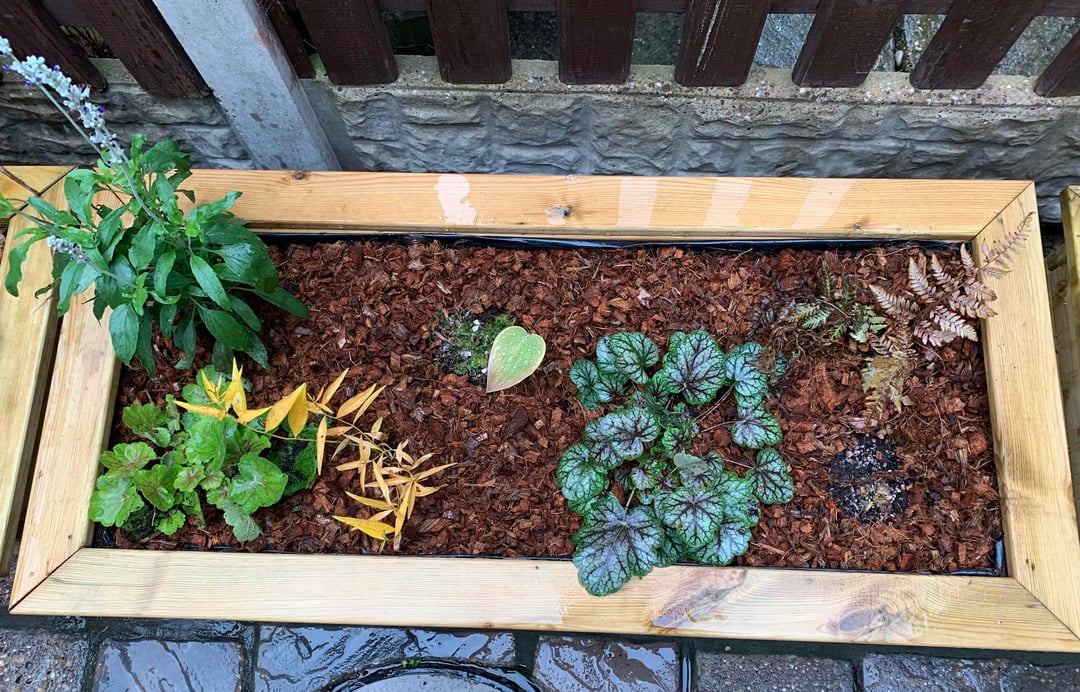 Gestern habe ich meinen Garten für den Winter gemulcht. Ich habe einen Mulch aus Kokosnussschalen verwendet. Ich finde, er gibt eine wirklich schöne Farbe und ist einer der wenigen, die ich gefunden habe, der bei Nässe nicht schwarz wird.