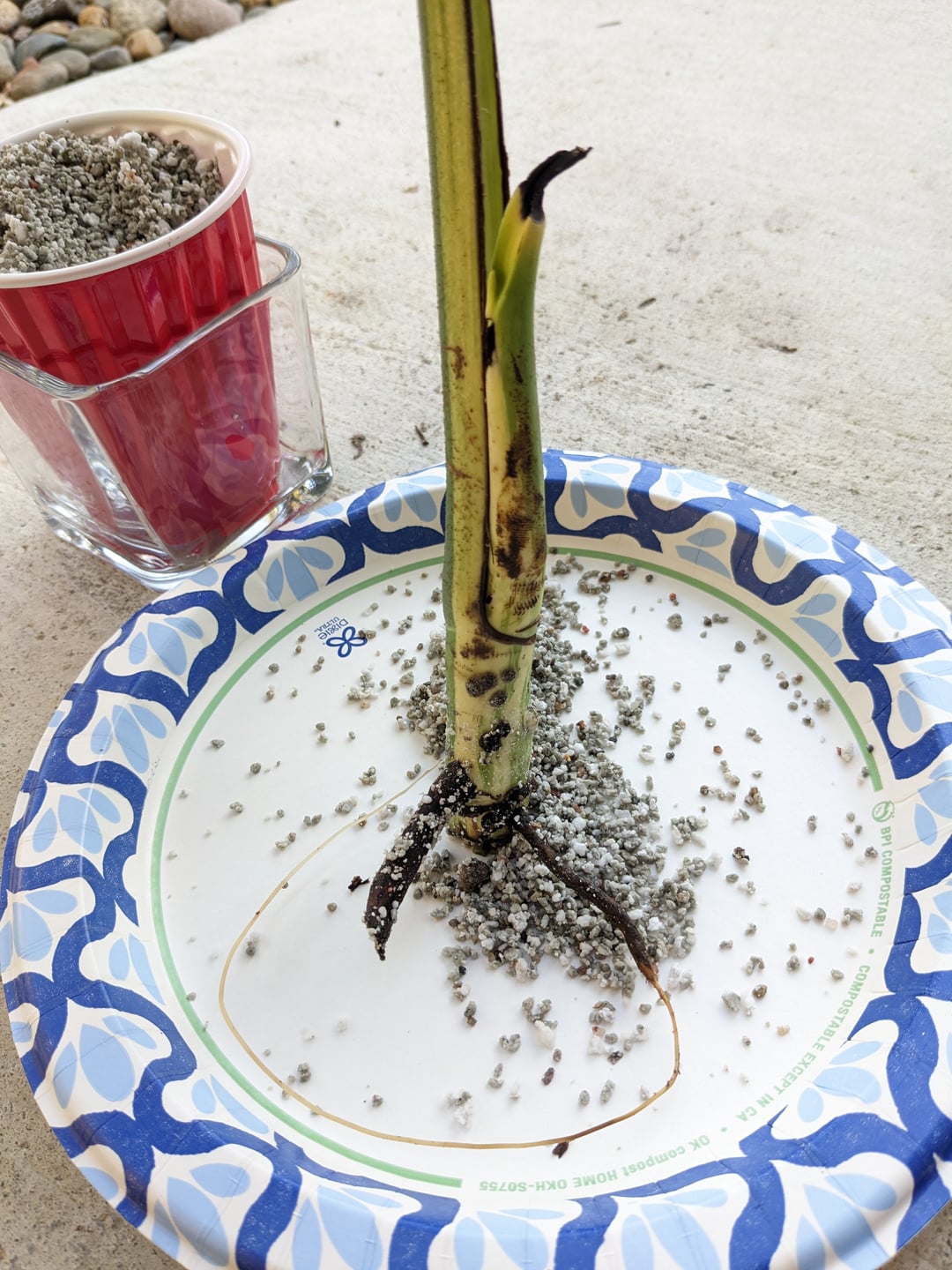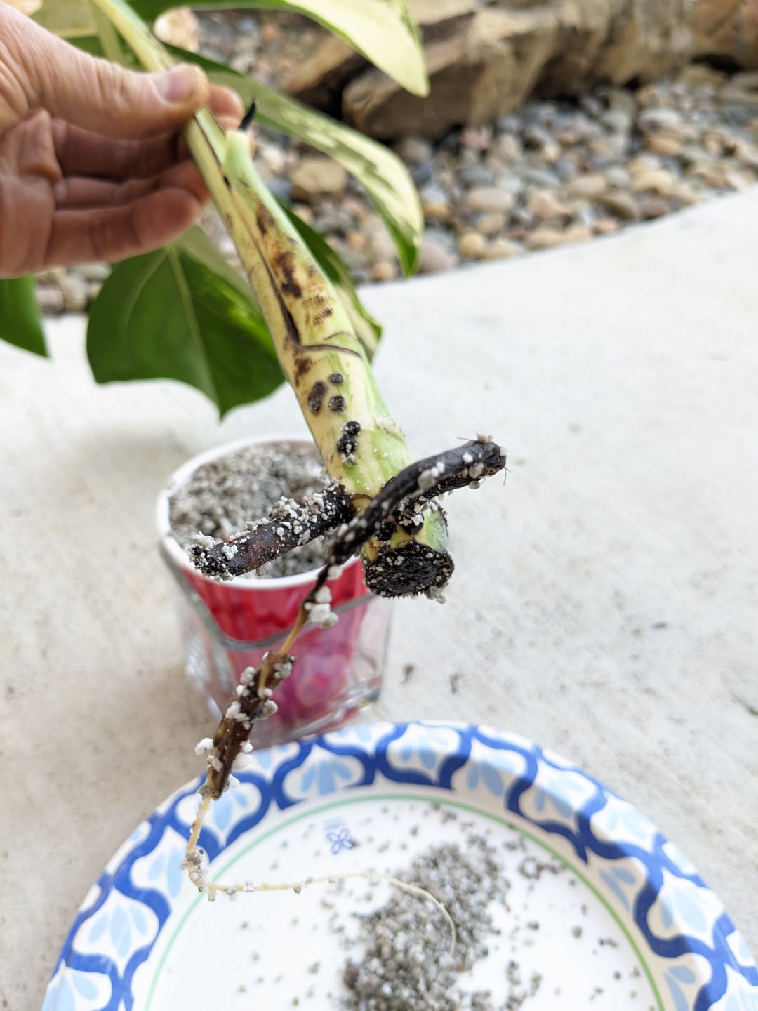 Schneiden Sie die Wurzeln ab, sie verfaulen weiter (die Hülle) – mit einer Schnur übrig? Abgestorbenes Gewebe rundherum mit anderem Wurzelpunkt. Von Hand gewaschen, Wasserstoffperoxid. Das verfaulte Blatt hat eine Schwärzung um den Stiel herum. Eventuell mit einem Fungizid behandeln?