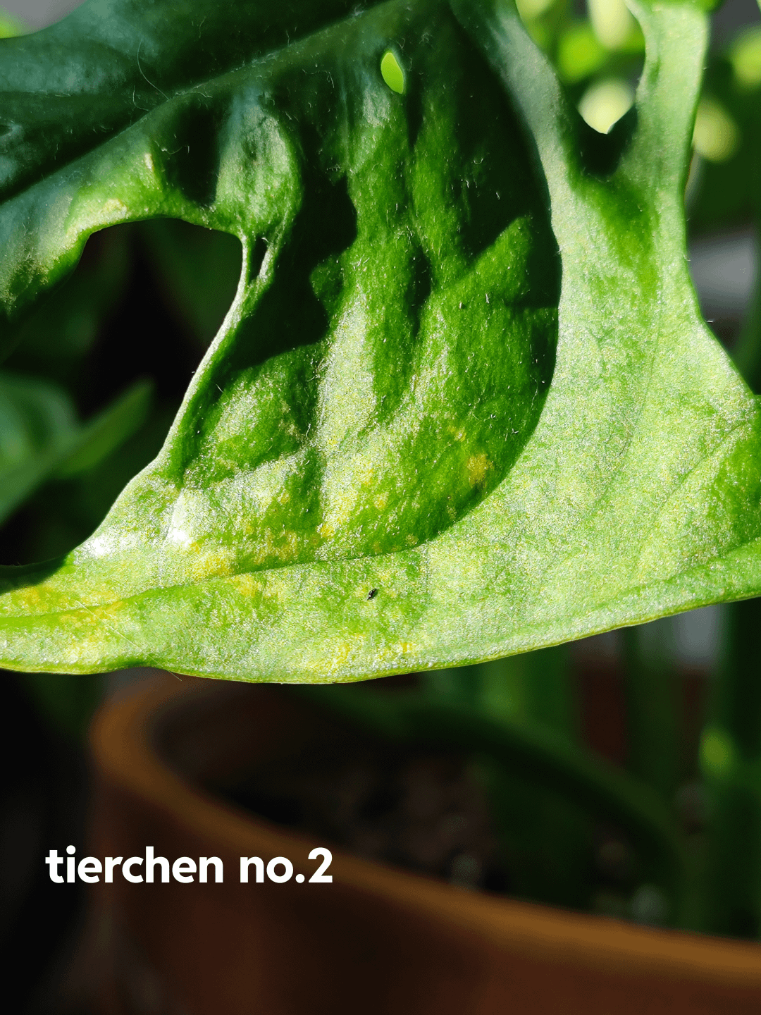 Ich hab auf meinem Weihnachtsstern und auf meiner Monstera jeweils ein Tierchen, ich fürchte das sind Thripse. Die Monstera habe ich vor ca. 10 Tagen mit Careo Schädlingsfrei behandelt, ich glaube wenn ich das nochmal mache und die Blätter abwische sollte das passen. Beim Weihnachtsstern bin ich nicht ganz sicher. Auf der Packung von Careo steht, dass man das Mittel auf Weihnachtssternen nicht anwenden darf.