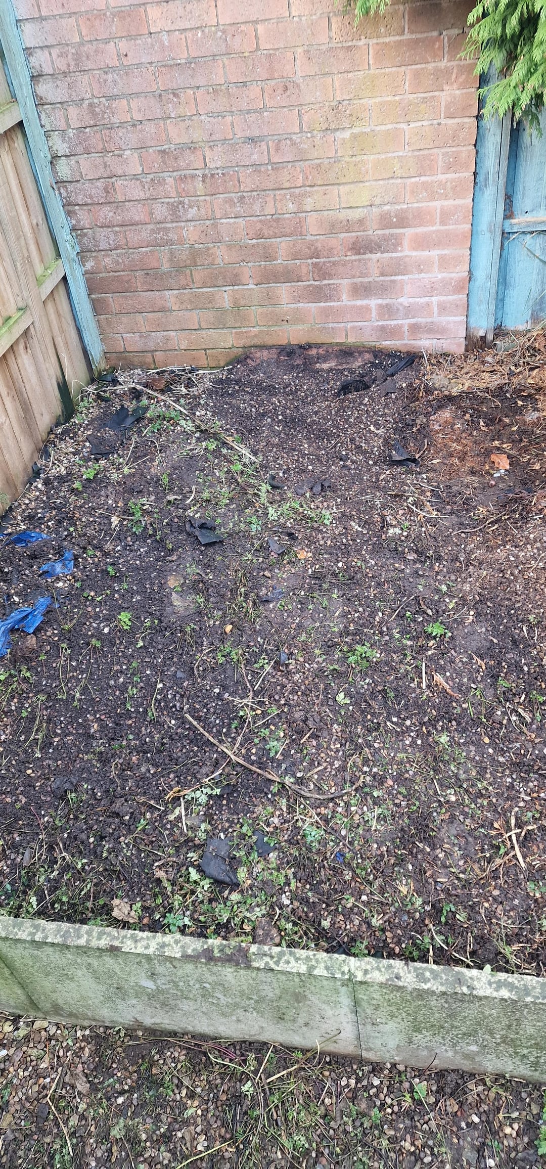 Aufgrund verschiedener Probleme habe ich den Garten hinter dem Haus stark vernachlässigt. Mir geht es gut, die Wartung im Auge zu behalten, aber ich habe keine Ahnung, was ich mit diesem Chaos anfangen soll, jetzt, wo es so schlimm geworden ist. Ich arbeite daran, Unkraut und Schutt zu entfernen, bin mir aber nicht sicher, was ich danach tun soll, insbesondere mit der Kiesgrube, die der Hund zerfleischt hat.