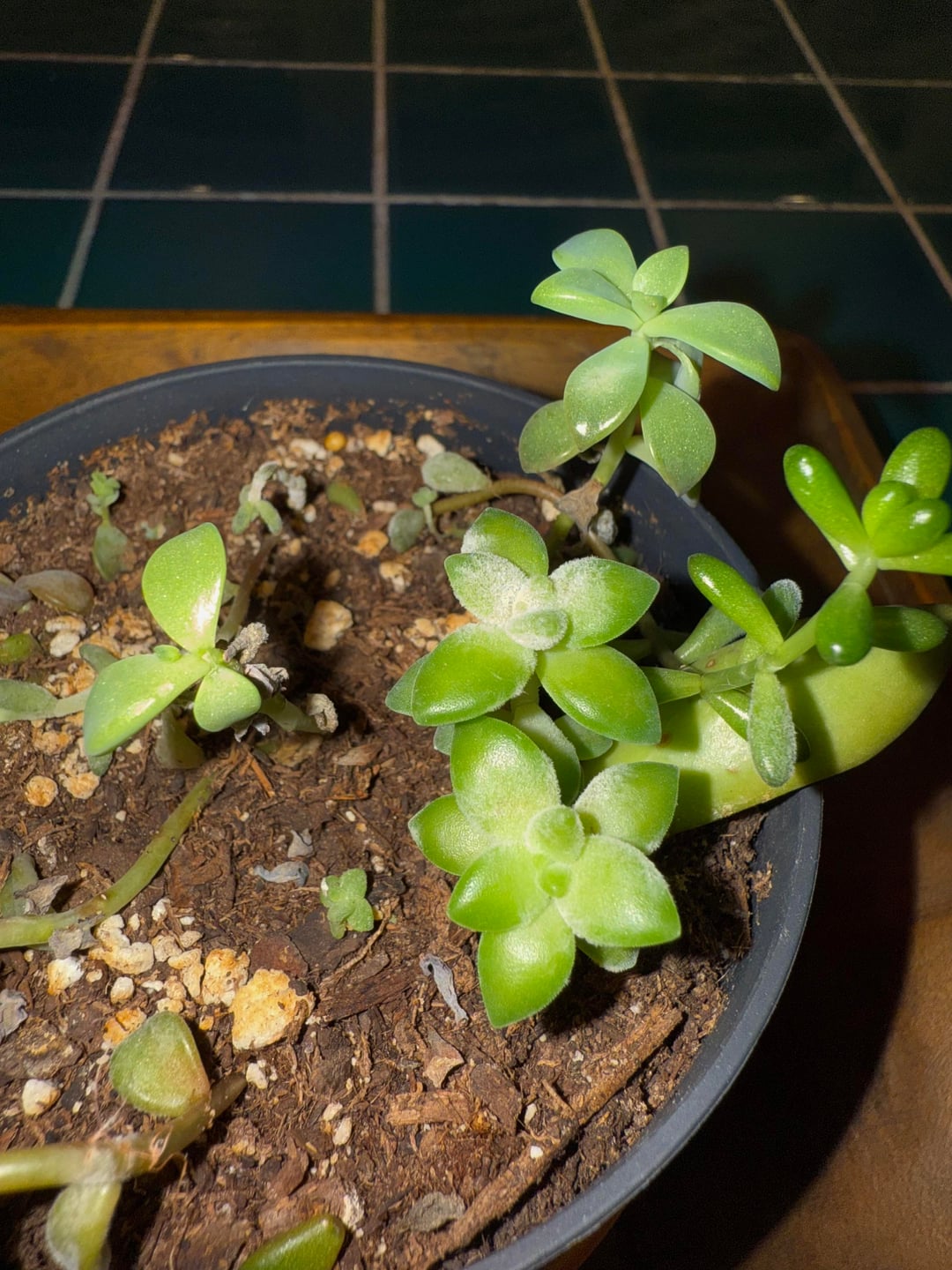 Ich habe diese Baby-Sukkulenten selbst vermehrt und gezüchtet und sie dann zusammen gepflanzt, um einen Sukkulentengarten zu schaffen. Sie sind jetzt mit weißem flockigem/pulvrigem Schimmel bedeckt und sterben ab. Habe ich sie zu dicht nebeneinander gepflanzt? Sie verfügen über eine Entwässerung. Ich bin ein Neuling und lerne also noch. Lassen Sie mich wissen, ob ich etwas tun kann, um sie zu retten!