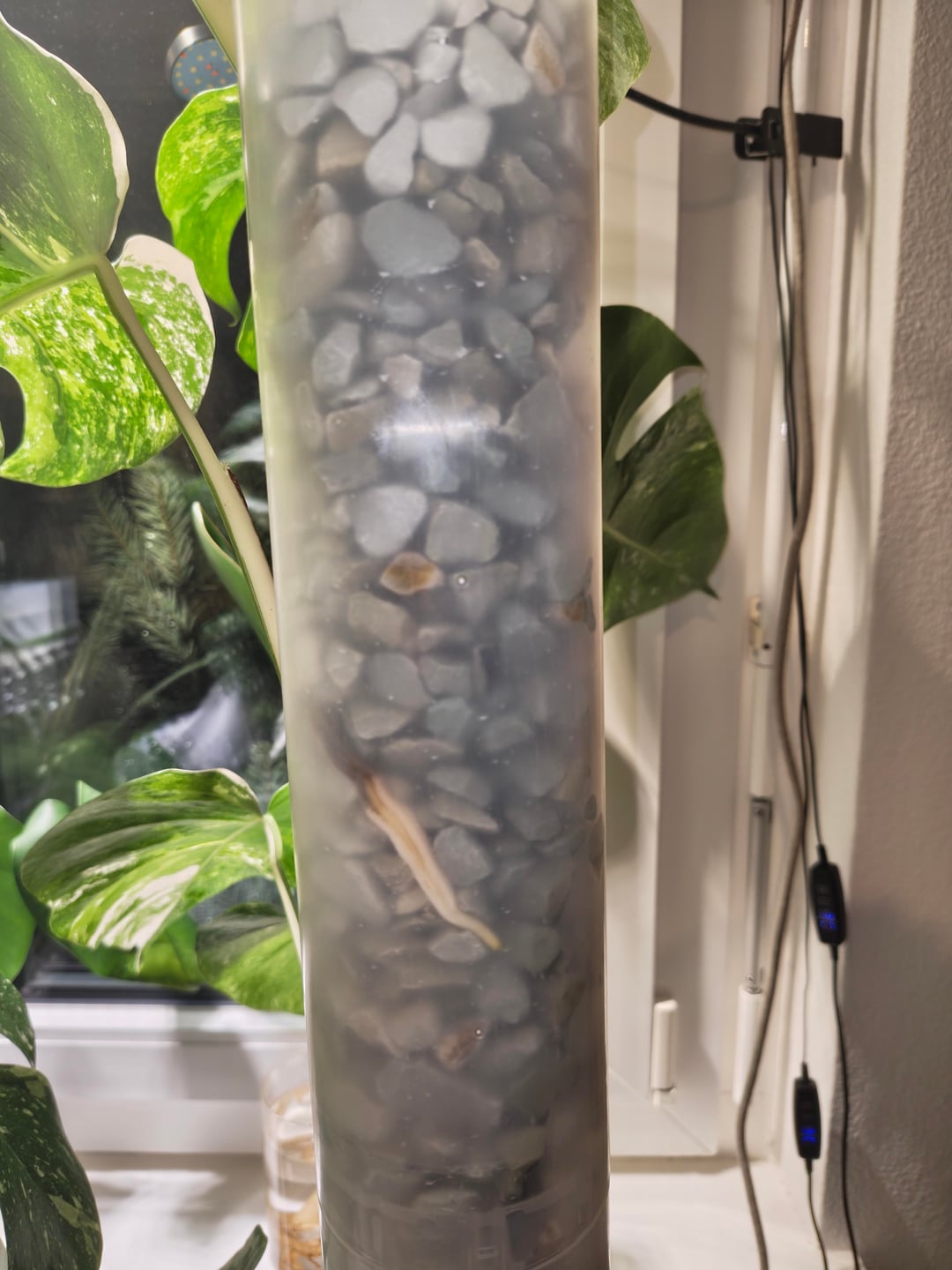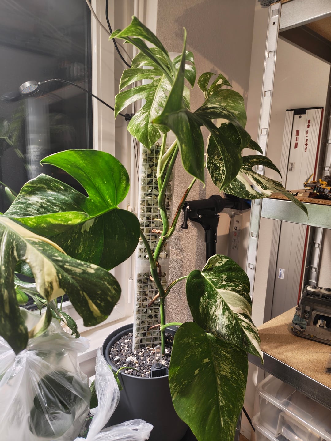 Diese Albo wurde vor genau einem Monat in Semihydro umgetopft und hat den Rankstab gekriegt und sie ist absolut happy 💚