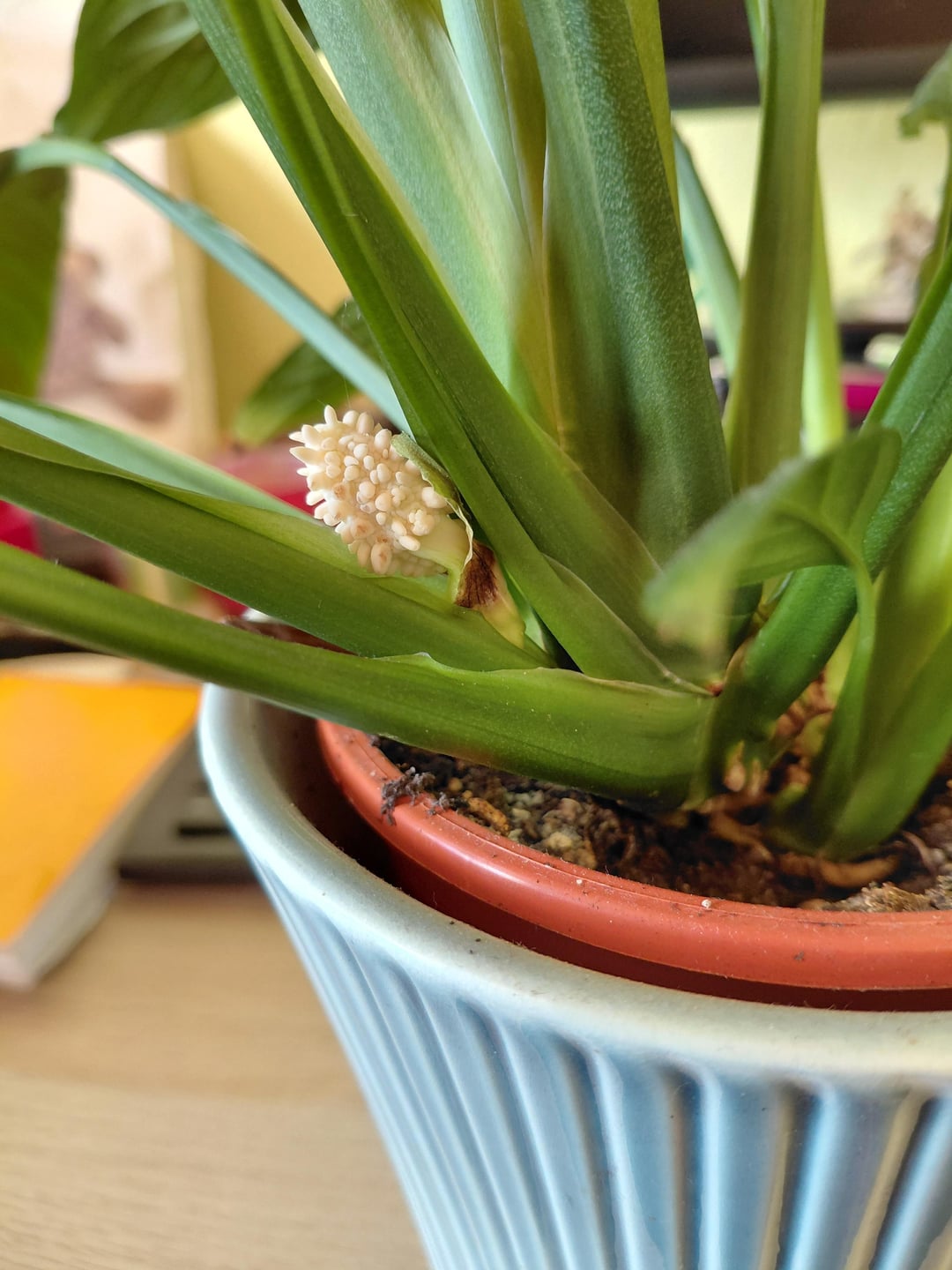 Der jüngste Ableger meines Einblatts ist durch seine erste Blütephase, und gerade habe ich erst bemerkt, dass er einen Pollenstab ganz unten ausgebildet hat. Völlig ohne Blütenblatt. Das haben bisher weder die Elternplanze, noch andere Ableger gemacht. Immer mal wieder Überraschungen.