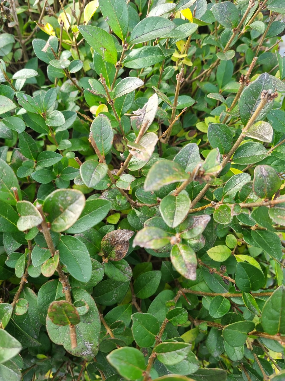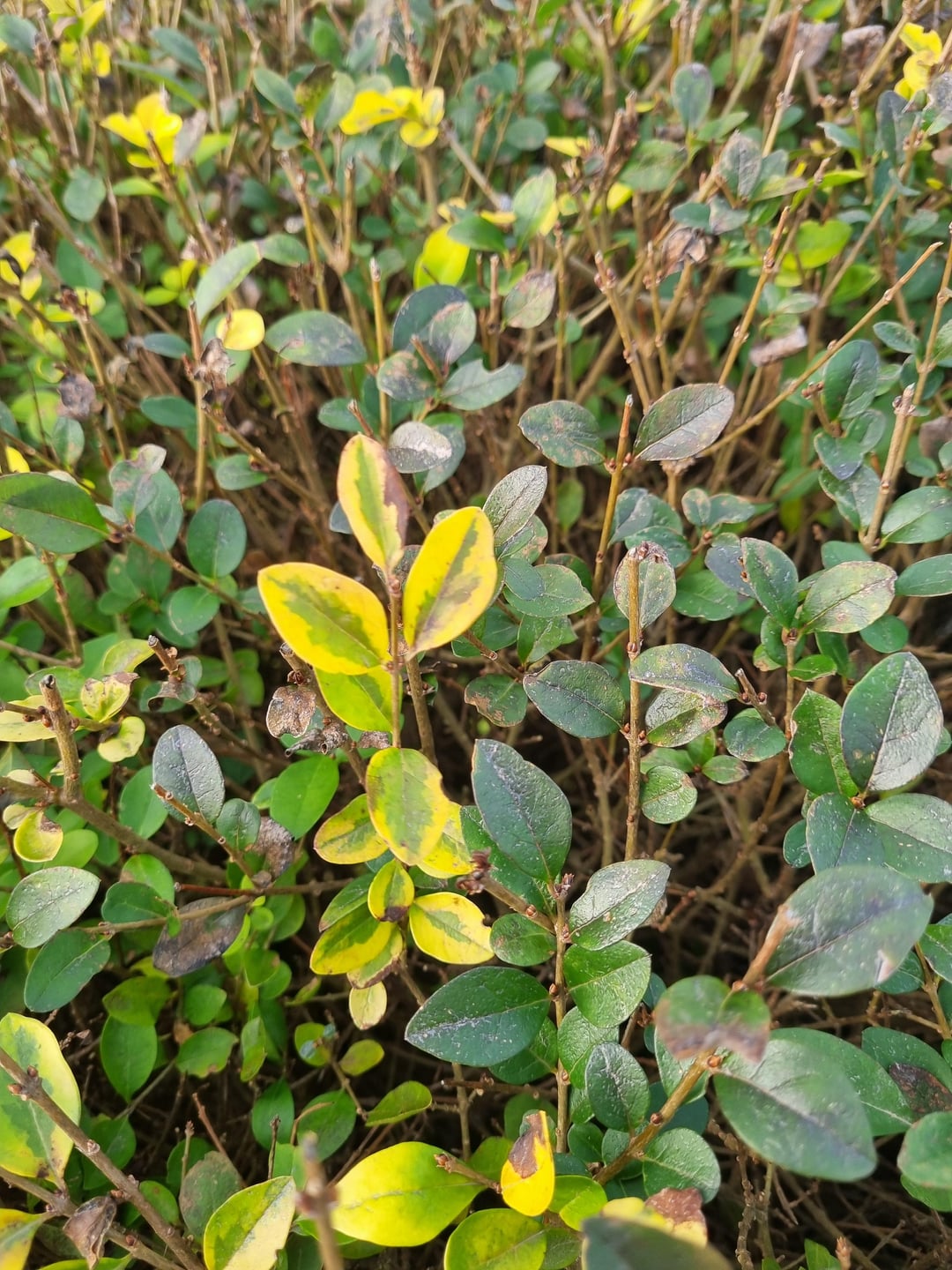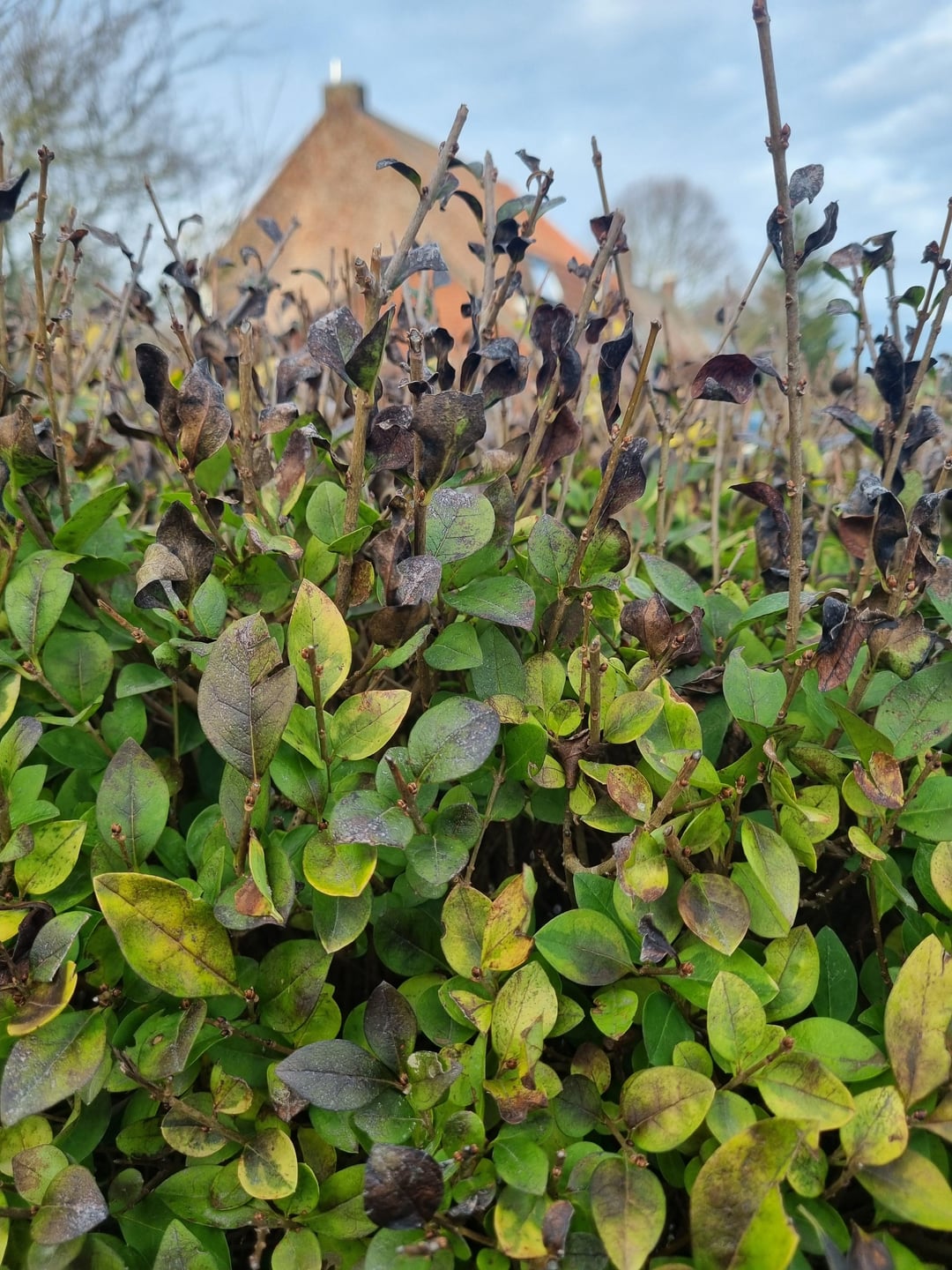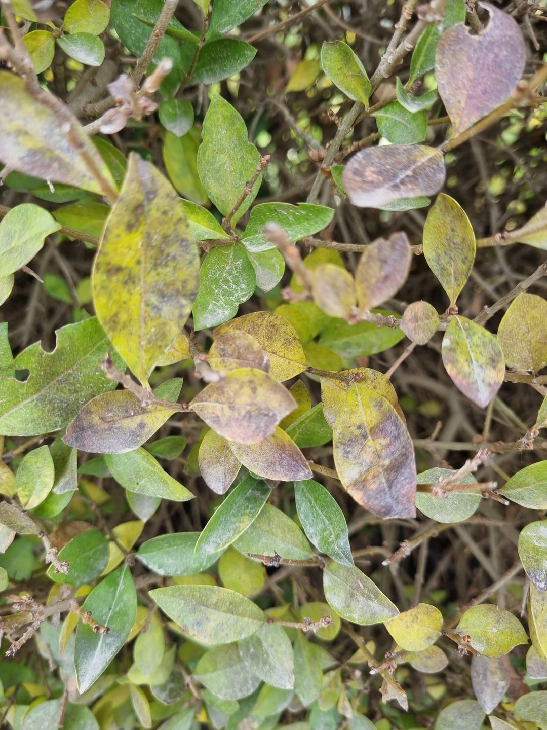 Vor einiger Zeit hatten wir Schnee und Frost. Ich dachte, der Laubfall sei wetterbedingt. Aber nach ein paar Wochen sehe ich, dass sich die Situation verschlechtert. Es gibt Bereiche mit Blättern, die aber nicht sehr schön sind. Es gibt Bereiche, in denen es überhaupt nichts gibt. Oben ist alles verblasst.