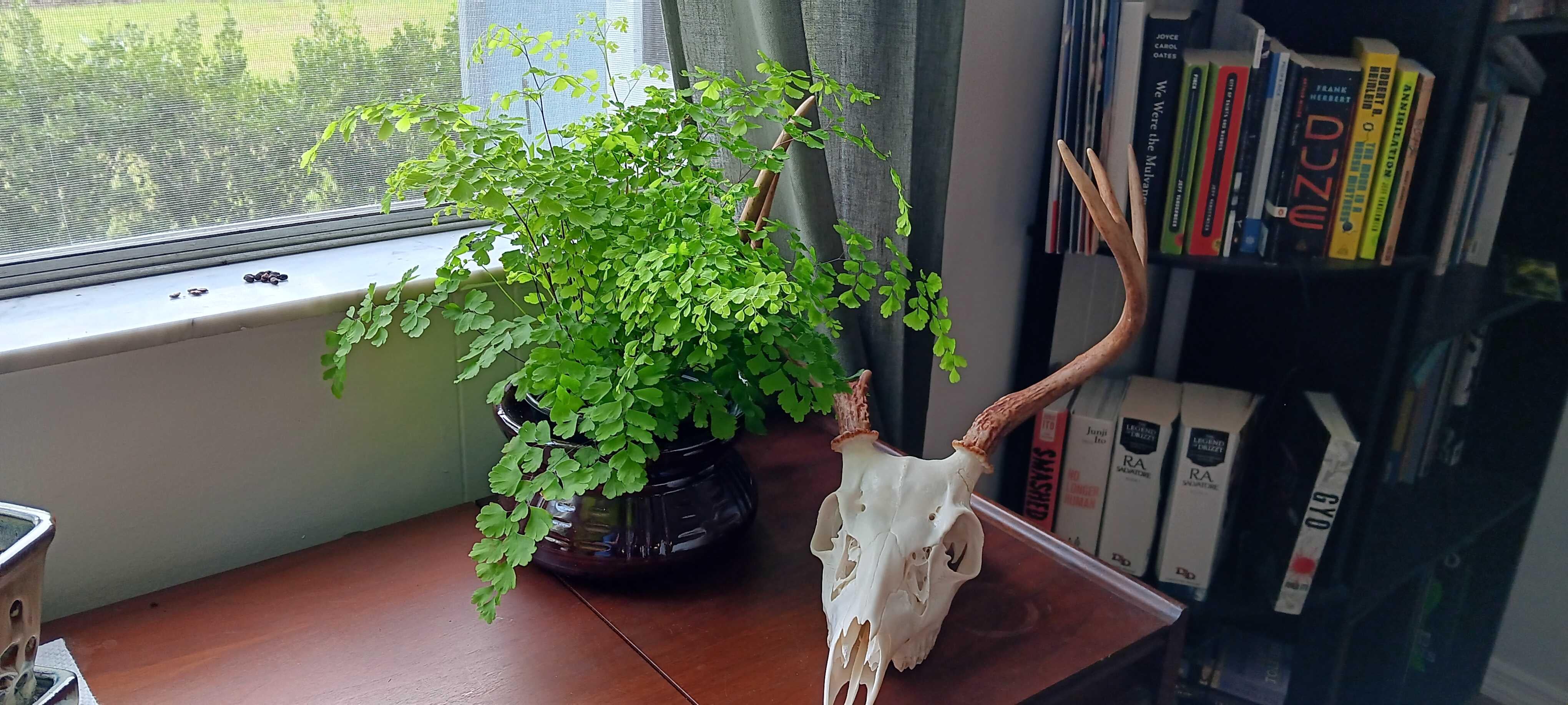 Vor ein paar Tagen habe ich hier gepostet und nach Pflanzenideen für diesen ausgefallenen Spucknapf gefragt, den ich gefunden habe. Gestern habe ich diesen wunderschönen Frauenhaarfarn in einem örtlichen Antiquitäten-/Pflanzengeschäft gefunden und wusste, dass es der Richtige ist.