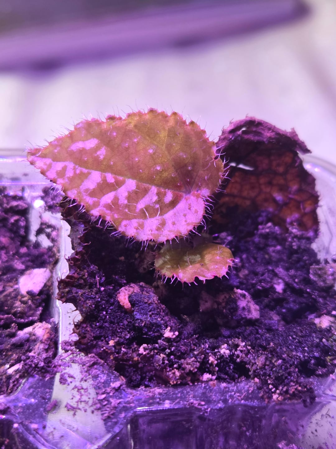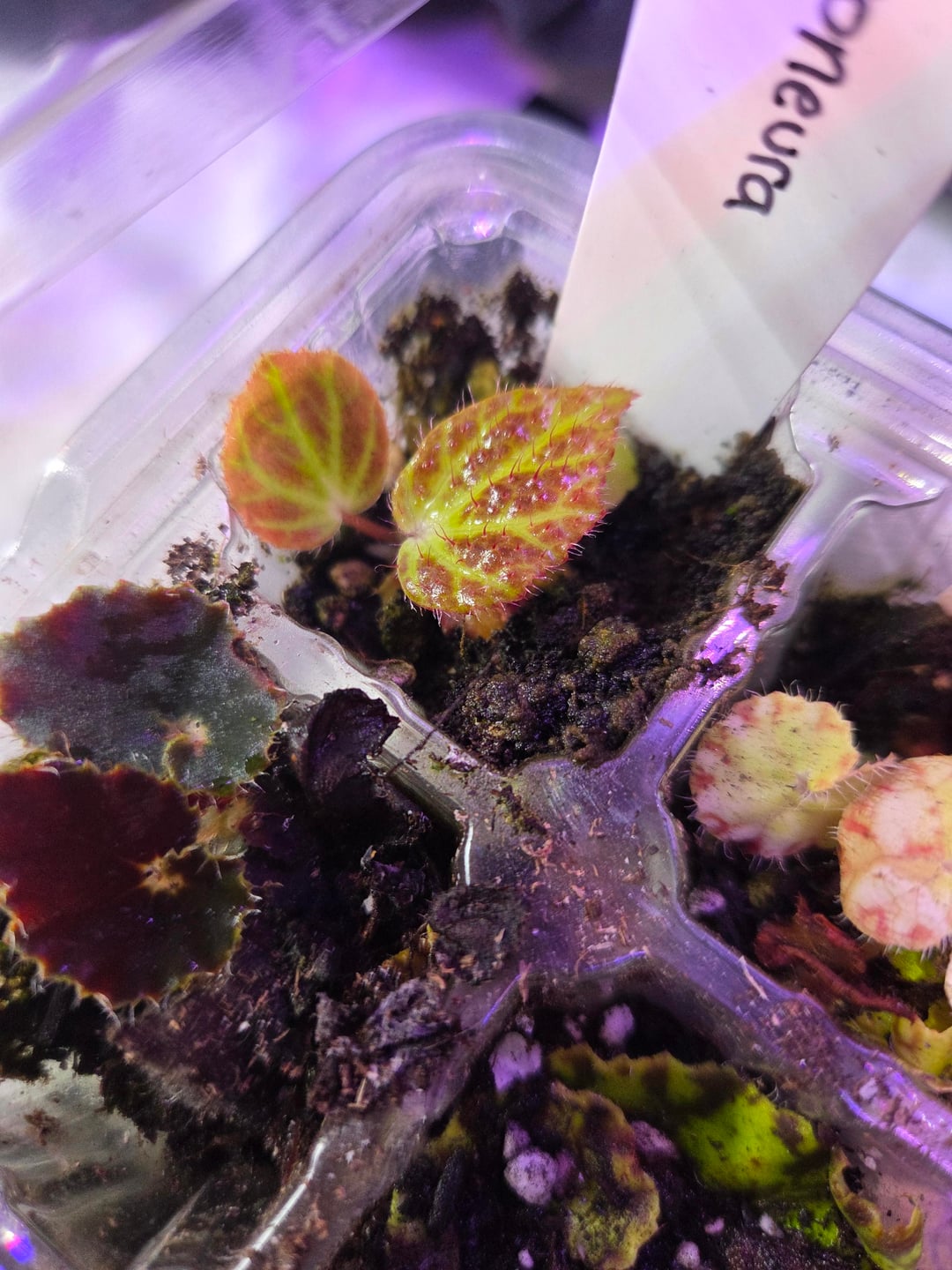 Ich bin mir nicht sicher, ob der Handel erlaubt ist, aber ich habe diese gesunde junge Begonie Chloroneura sowie ziemlich schnell wachsende Sämlinge des Eisernen Kreuzes und einen Herkules-Sonnentau Von: m4licealicerose