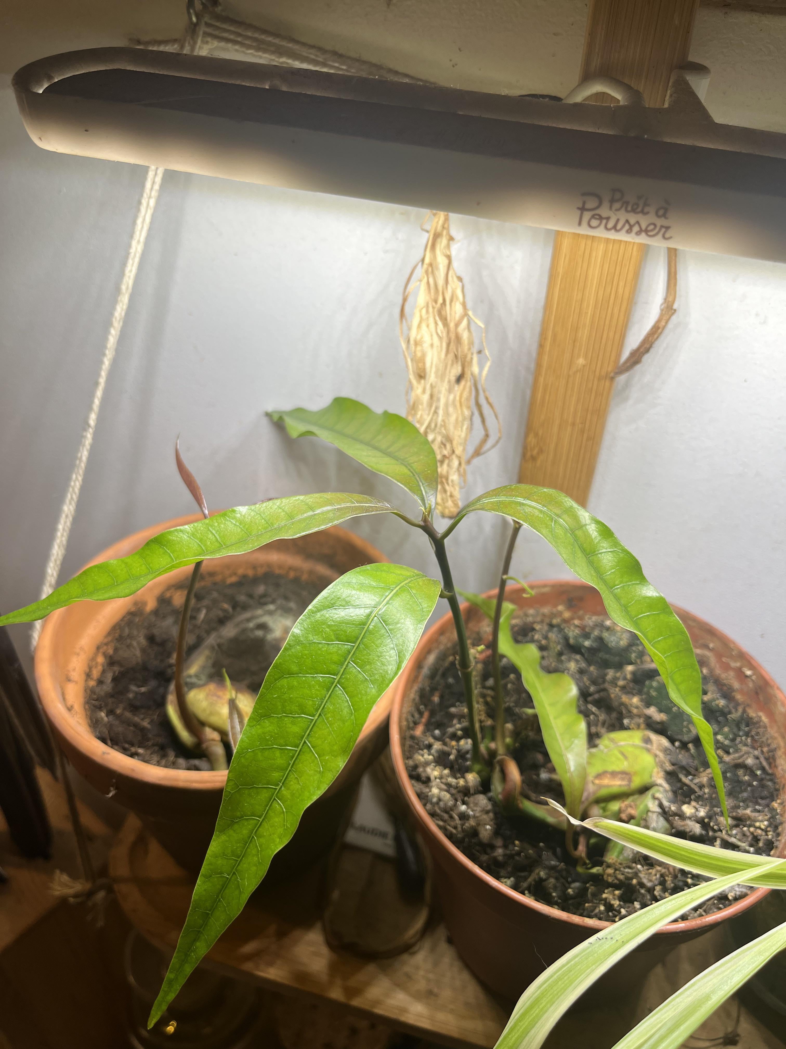 Ich hatte 3 Samen, der erste nahm sehr gut an (ich schnitt die jungen Triebe ab, um das Wachstum eines einzelnen Stiels zu fördern), der zweite keimte auf wundersame Weise, während der Samen zu faulen begann.