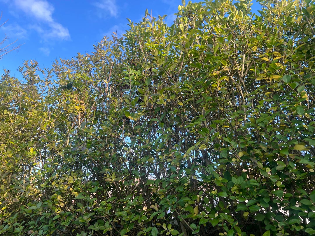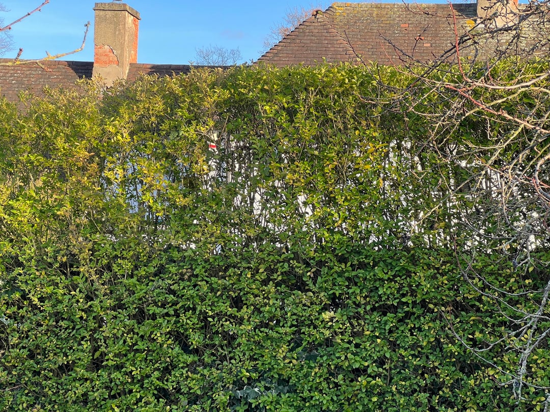 Wir haben den größten Teil unseres Gartens von einer hohen Ligusterhecke umgeben und die Matte der Hecke ist schön dicht und gesund.