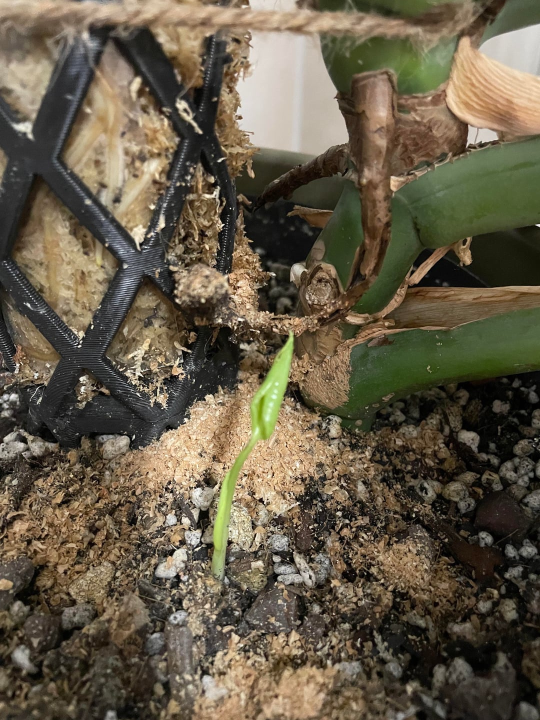 bei meiner Monstera kam die Tage ein neues kleines Pflänzchen und ich bin am rätseln, was es ist. Ich habe sie erst vor ein paar Monaten umgetopft und eigenes Substrat mit Kokoserde, Orchideenerde und Perlit gemischt – es ist also eher unwahrscheinlich, dass es irgendwelche Samen von Tomaten oder so sind (was ich schon häufiger erlebt habe, wenn ich alte Erde verwendet habe). Das letzte neue Blatt ist jetzt auch eine Weile her und ich frage mich, ob sich ein neuer Trieb gebildet haben kann? Hat jemand eine Ahnung, ob Monsteras sowas machen?