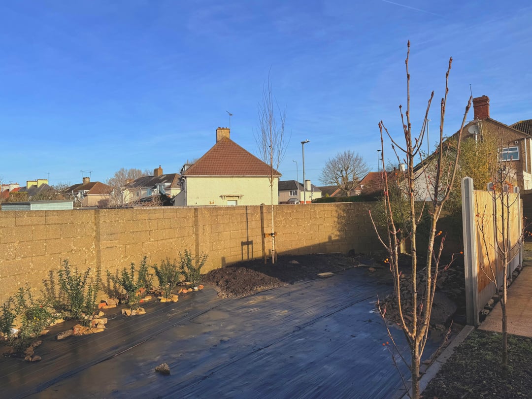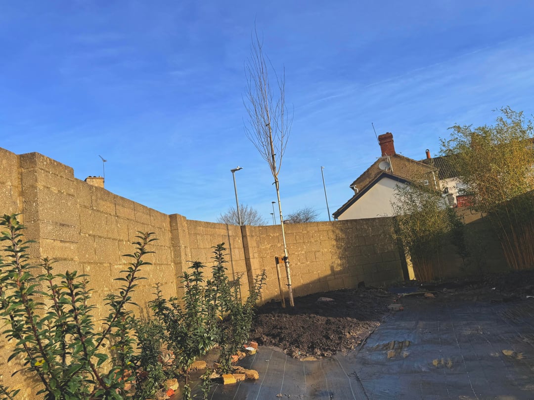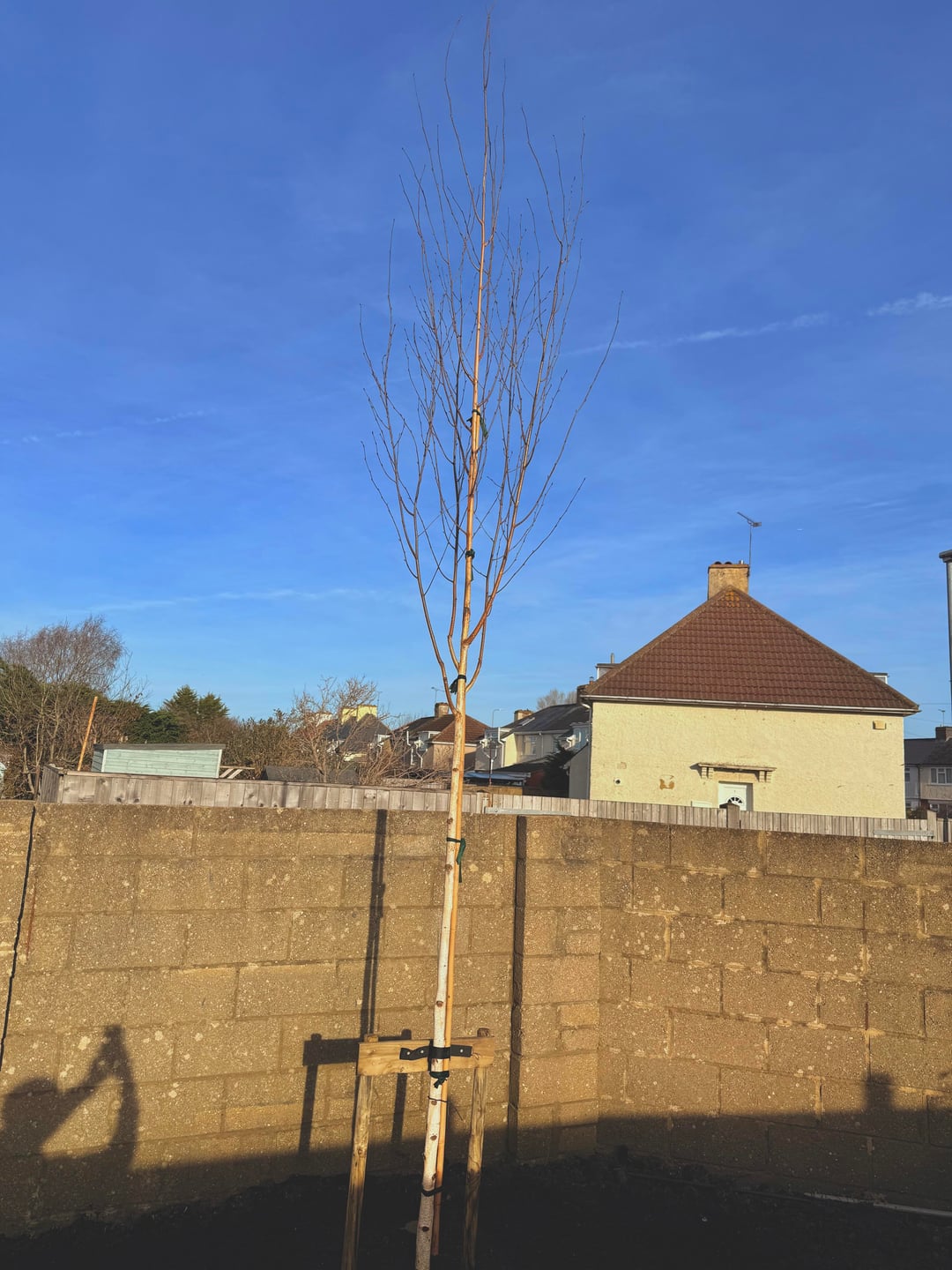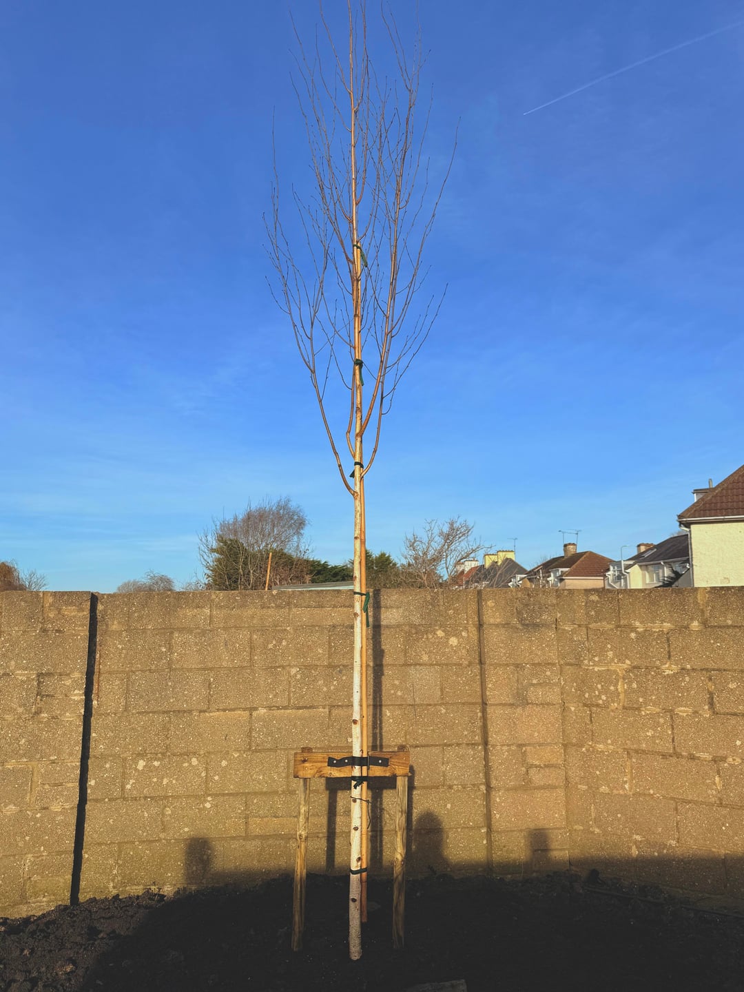 Ich habe diese Größe gewählt, weil der Baum in der Mitte einer Pyracantha-Heckenreihe wachsen wird.
