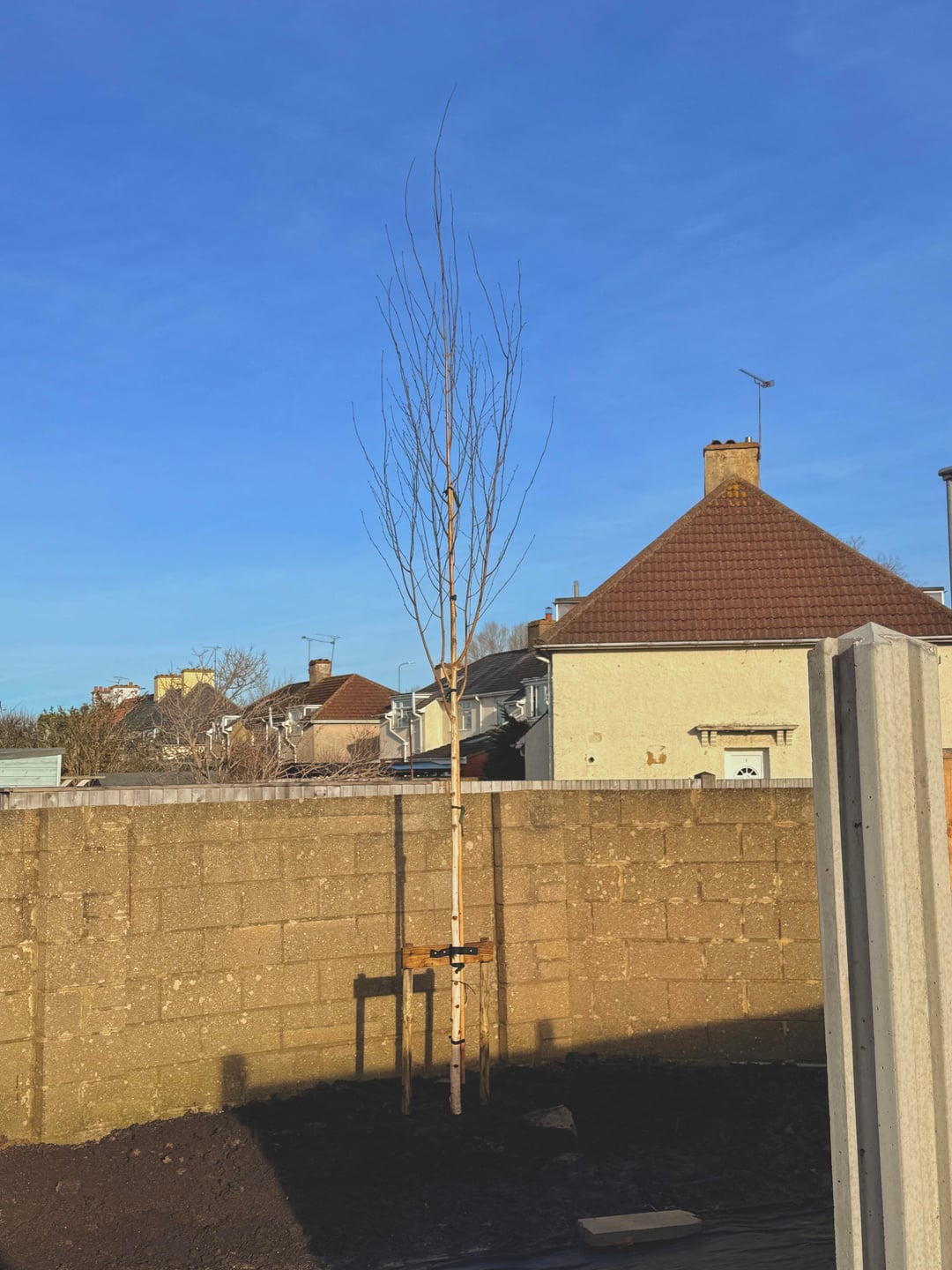 Ein schöner Tag, um einen Baum zu pflanzen. Es hat ungefähr drei Stunden gedauert, aber wir haben es schließlich geschafft.