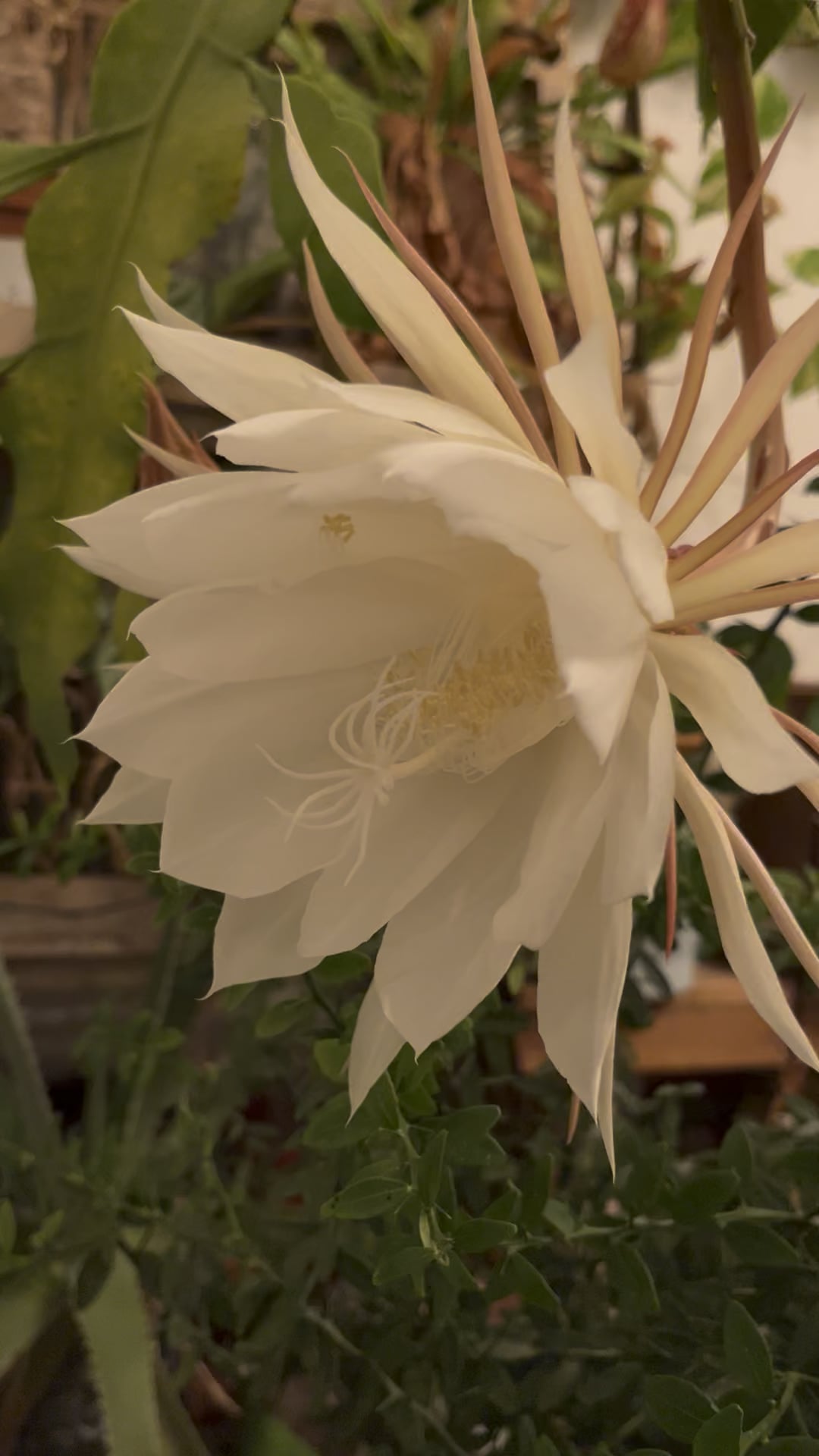 Sie blüht nur eine Nacht, oft in mehreren Blüten im Abstand von ein paar Nächten, und blüht mehrmals im Jahr. Der Geruch breitet sich in der gesamten Wohnung aus. Die Blüte erfolgt in wenigen Stunden und am nächsten Morgen ist sie fertig!