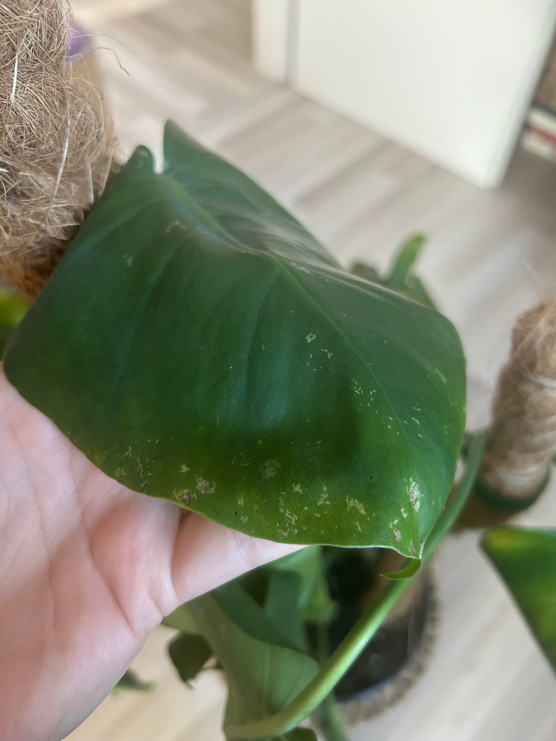 Es kommen zwar 2-3 neue Blätter, aber die sind auch schon an manchen Stellen braun, alle anderen Blätter hängen super schlapp und haben Flecken.