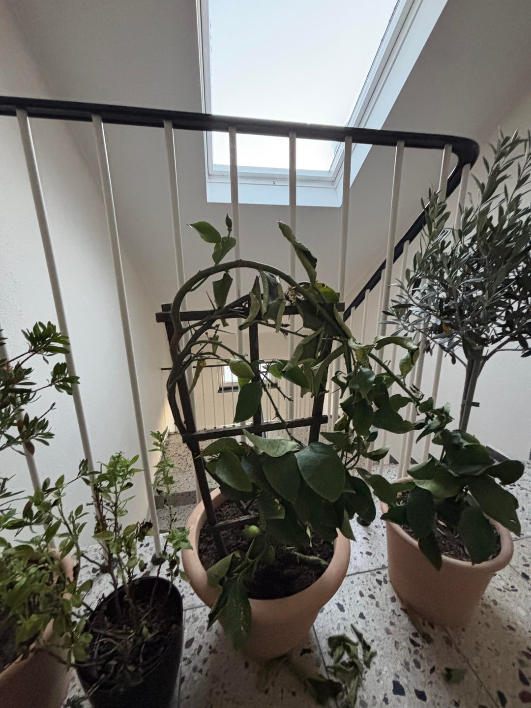 Hab die vor ungefähr 3 Wochen vom Balkon in meinen Hausflur gestellt für den Winter. Hätte eigentlich gedacht, dass die Bedingungen für eine Überwinterung gut wären, aber seit ein paar Tagen verliert die sehr schnell ihre Blätter (oben links erkennbar).