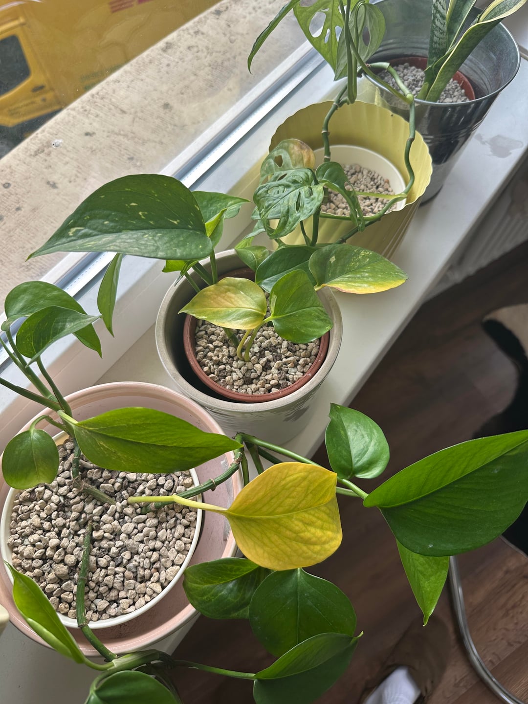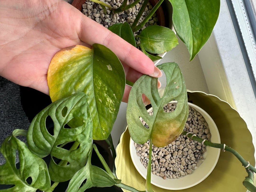 Hilfe Leute 😅 Meine Pflanzen (Efeutute und Monstera adansonii) bekommen gerade überall gelbe Blätter. Ich gieße inzwischen schon weniger und habe sie näher ans Fenster gestellt, weil ich dachte, sie brauchen im Winter mehr Licht. Schädlinge sehe ich keine.