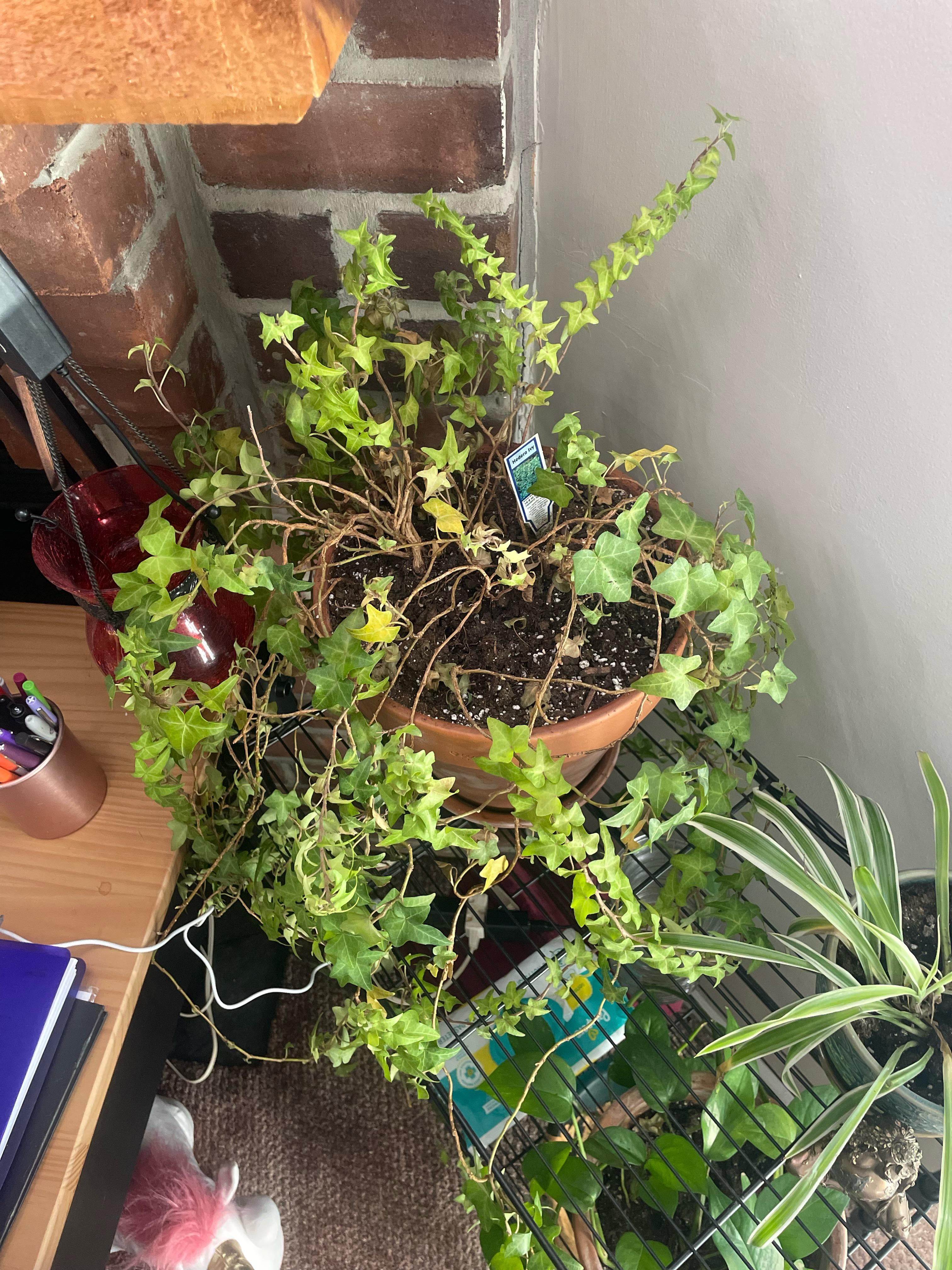 Kann mir jemand bei meinem Hedera Ivy helfen? Ich bekam es geschenkt und als ich es bekam, hatte es sooooo viele Blätter mehr, es fing an, trocken zu werden und viele davon zu verlieren. Ich habe es in einen etwas größeren Topf umgetopft (die Wurzeln hatten keinen Platz zum Wachsen). Egal wie viel ich gieße, die Erde sieht immer trocken aus und mein Feuchtigkeitsthermometer zeigt immer „trocken“ an, auch nachdem ich es gegossen habe. Darüber befindet sich eine Pflanzenlampe (mehr als 12 Zoll). Ich weiß nicht, was ich sonst tun soll. Wie oft muss ich es gießen? Ich möchte es nicht über- oder unterbewässern. Ich versuche, es nicht in eine Phase des Beinahe-Sterbens kommen zu lassen. Danke schön! 🙏🏼