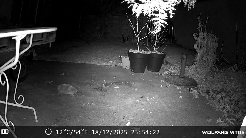 Diesen Winter habe ich eine Kamera installiert, um die Tieraktivitäten nachts zu beobachten. Bisher habe ich Katzen, ein Wiesel, eine Ratte und diesen Igel gesehen. Von: SaladAddicts