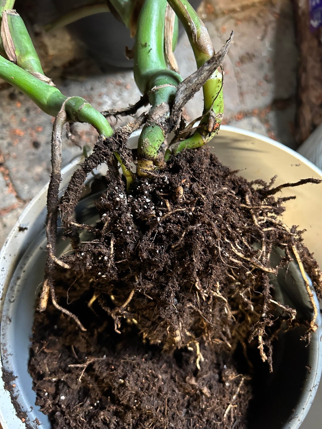 Wurzel scheinen soweit ich das beurteilen kann ok, zumindest nicht angefault. Ich glaube die Pflanze ist seit mittlerweile Monaten NICHT übergossen.