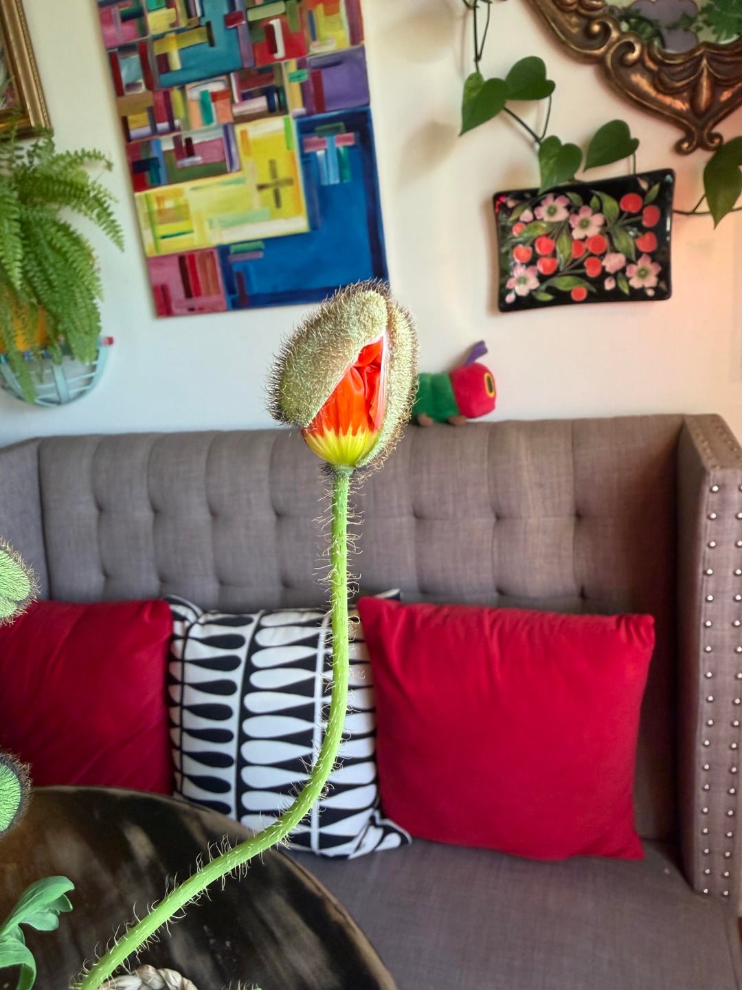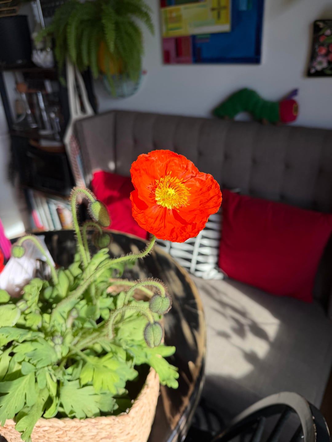 Ich habe die Mohnblumen gegossen und nach draußen gebracht!