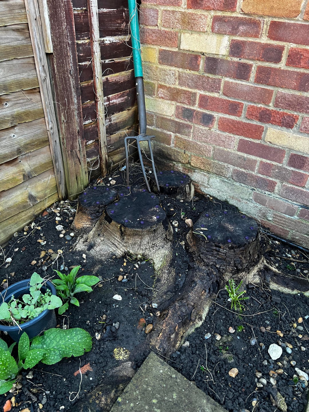 Das zweite Problem ist etwas umständlicher. Ich habe ein paar alte Baumstümpfe, in die aufgrund früherer Setzungsbefürchtungen Ökostopfen eingesetzt wurden. Aufgrund dieser Geschichte können sie nicht entfernt oder abgeschliffen werden. Hat jemand mit solchen Stümpfen zu tun gehabt? Sollten sie einfach der natürlichen Verrottung überlassen werden oder gibt es eine empfohlene Methode, um sie langfristig stabil und aus dem Weg zu räumen?