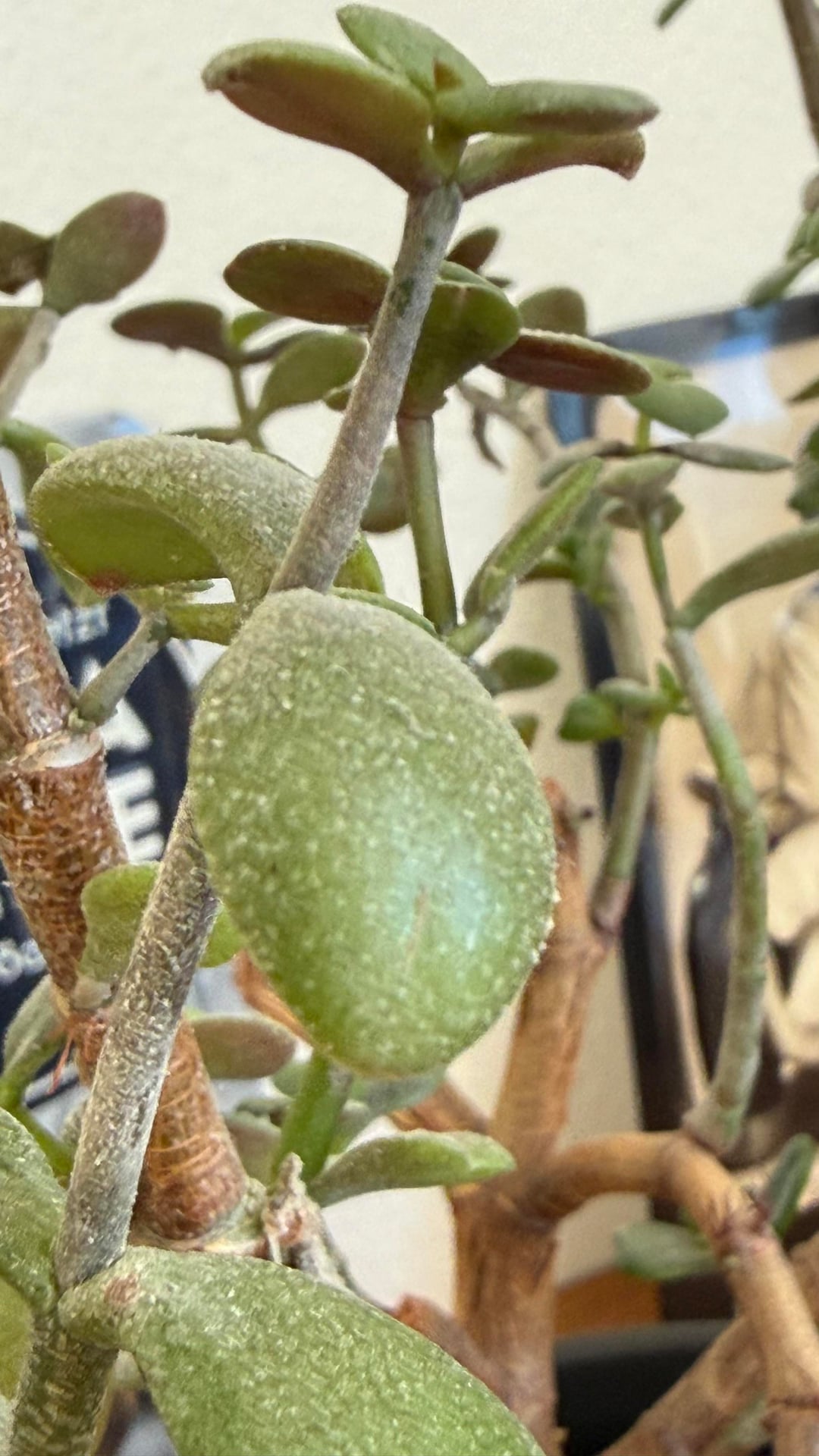 Hilfe, was ist mit meinem Geldbaum los? Wir haben den Geldbaum von meinem Vater geerbt. Deswegen ist mir das Überleben sehr wichtig. Aus irgendeinem Grund warf er dann bei uns seine Blätter in hoher Zahl ab. Wir haben ihn auch mal dann umgetopft in sukkulenten Erde. Er wurde in einen Topf gegeben. Eigentlich nie übergossen. Halbschattig gestellt. Normale Zimmertemperaturen und Luftfeuchtigkeit circa bei 45%. Meistens nie unter 17°C, wenn die Heizung mal aus war und es kälter draußen war. Also eigentlich relativ gute Bedingungen. Wird mit Osmosewasser gegossen. Keinen Dünger bekommen. Ich habe das Gefühl, dass eine Art Pilz auf ihm wächst bzw. Mehltau.