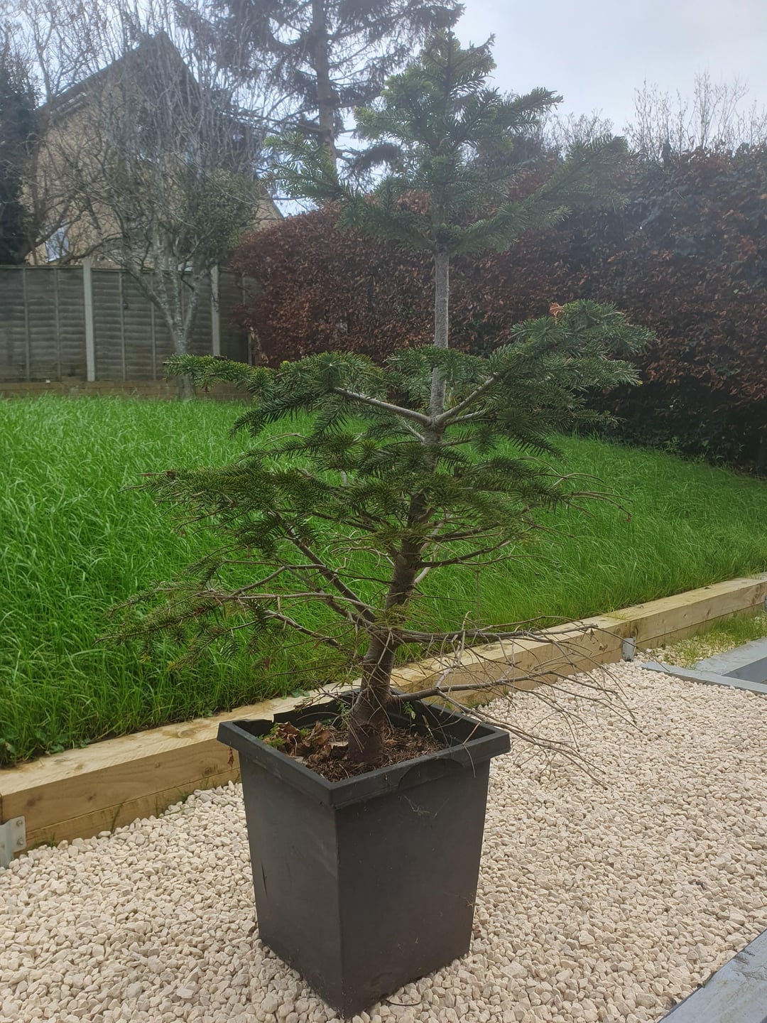 Dieser Baum wurde von den Vorbesitzern hinterlassen. Ich bin ein Neuling in der Gartenarbeit und würde ihn gerne durch Umtopfen behalten, aber er scheint Probleme zu haben, da die unteren Äste blattlos sind. Ist es möglich, es in einen größeren Topf umzupflanzen, und ist es wahrscheinlich, dass es überlebt?