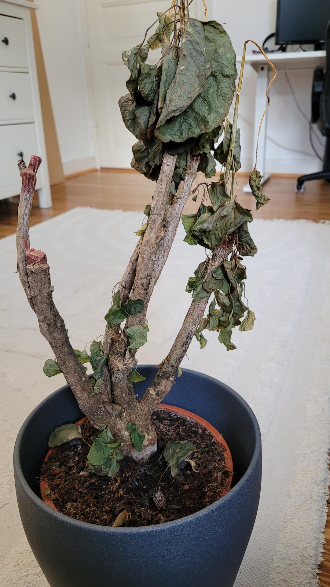 Es handelt sich um eine Polyscias fructosia. Sie ist komplett vertrocknet & im Übertropf sind einige kleine Fliegen/Käfer. Ich habe die vertrockneten Blätter & die kleinere Äste nun abgetrennt. Kann ich die Pflanze noch retten? Von: rajanna_