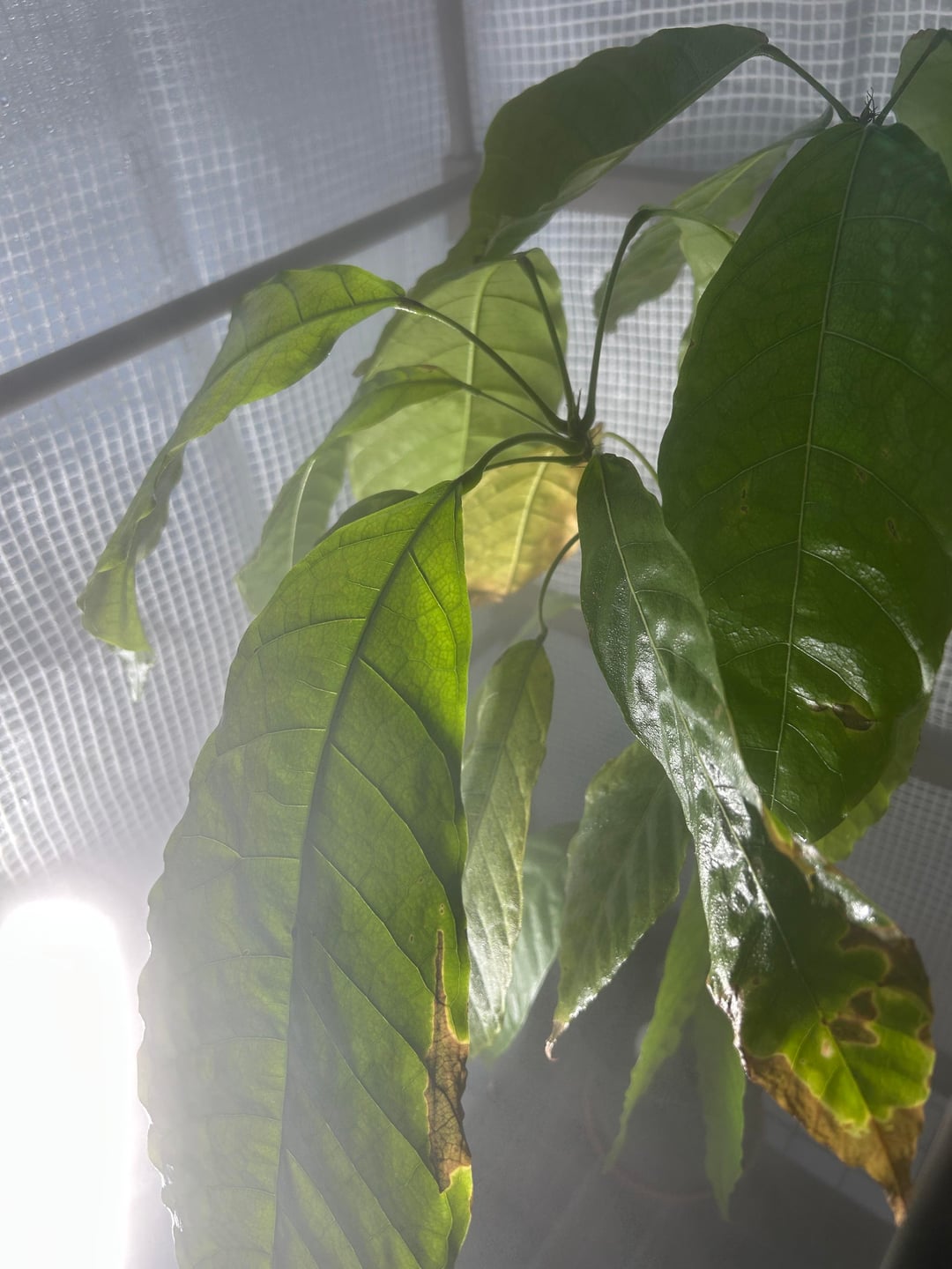 Hallo zusammen! Mein Sohn hat vom Weihnachtsmann (Trinitario, fast 2 Jahre alt) eine Kakaopflanze bekommen und wir machen uns ein bisschen Sorgen, dass es ihr nicht so gut geht. Es fallen etwa 1 Stück pro Tag mittelgroße Blätter ab, obwohl viele Blätter gut aussehen. Wir sind Anfänger im Gärtnern. Da wir in Deutschland leben, steht die Pflanze derzeit in einem kleinen Gewächshaus mit Luftbefeuchter und Heizung. Wir haben heute gerade ein LED-Licht hinzugefügt. Ich habe Bilder gepostet, wie die Pflanze aussieht, und ein Bild, wie ein Blatt aussieht, das heute abgefallen ist. Könnte es sein, dass es im Rahmen seines normalen Zyklus Blätter abwirft, während es dem neuen Wachstum Priorität einräumt? Vielen Dank für jede Hilfe, mein Sohn ist in sein Geschenk verliebt!