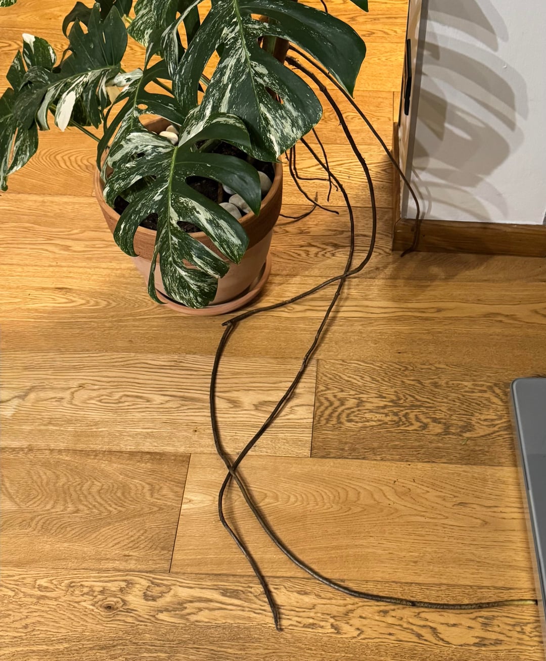 Meine Mutter hat letzten Sommer diese wunderschöne Monstera bekommen und ihre Wurzeln sind so lang geworden – ich habe gelesen, dass es am besten ist, sie wieder in den Topf zu stecken, aber dafür sind sie wirklich zu lang, also wollte ich sie einfach ein wenig abschneiden. Ist das in Ordnung? Ich möchte sie nicht töten, weil sie meine Lieblingspflanze ist und daher nicht sicher bin, was ich tun soll