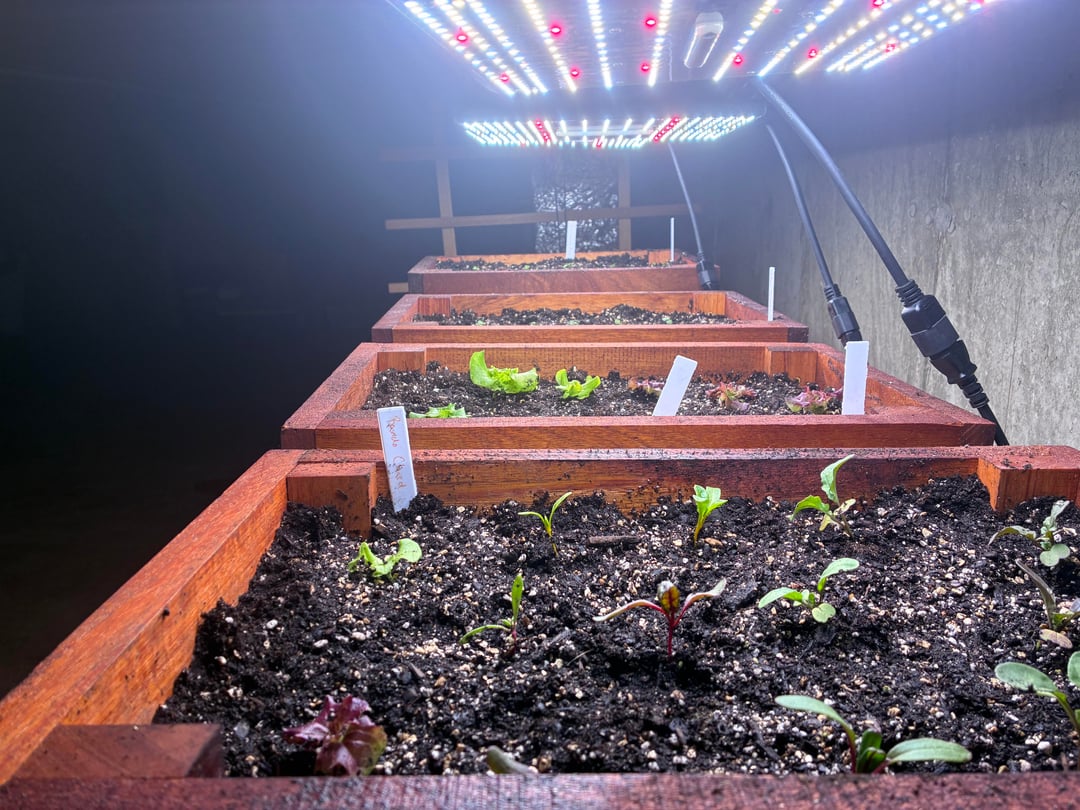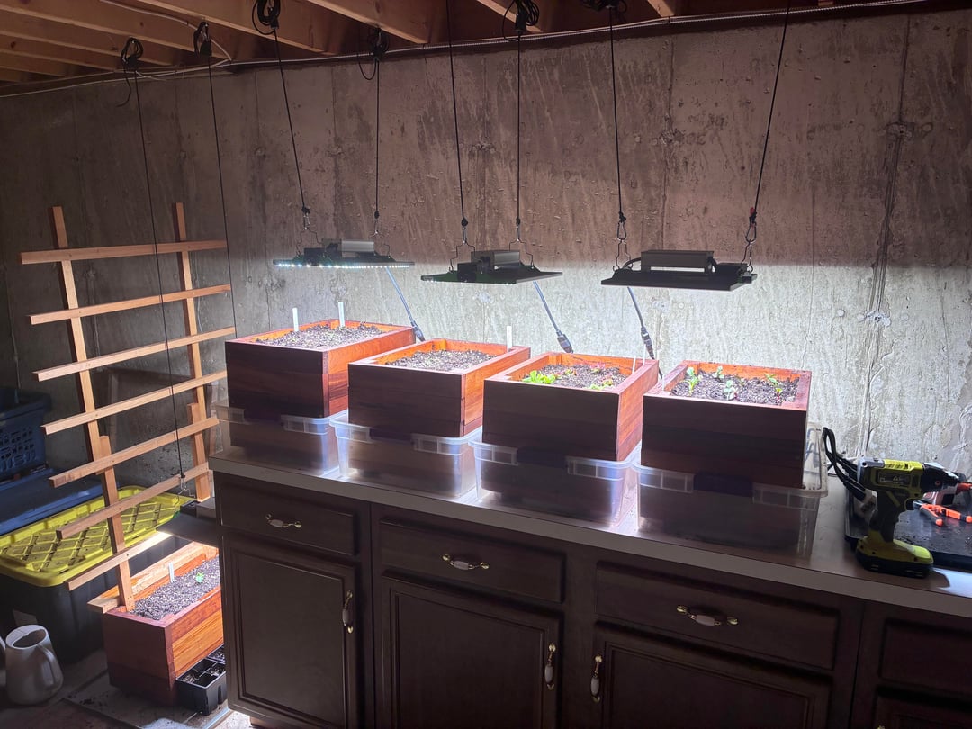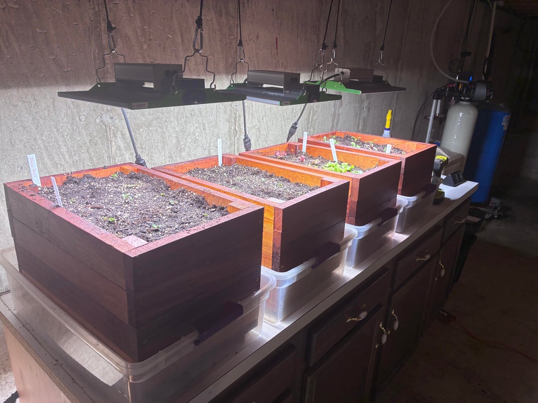 Ich habe diesen Winter meine Startlichter für die Frühlingssaat in Betrieb genommen und einige Mini-Hochbeete gebaut. Heute Morgen wurden die Sämlinge umgepflanzt.