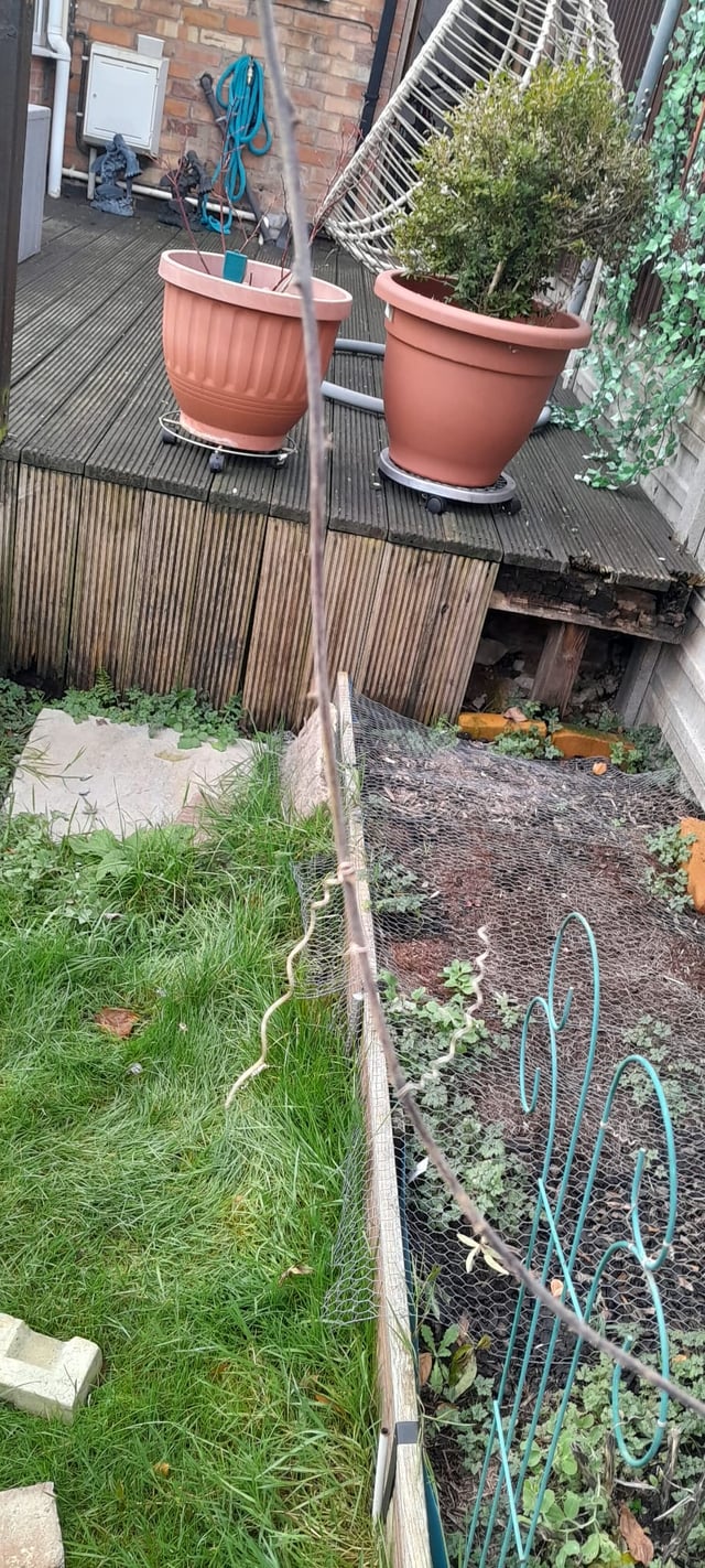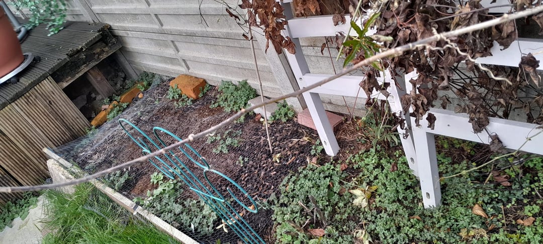 Ich denke darüber nach, den langen Spross abzuschneiden oder ihn an meinem Zaunpfosten ganz links zu befestigen, der nicht auf dem Bild ist, damit er entlang dieses Teils des Zauns wächst.