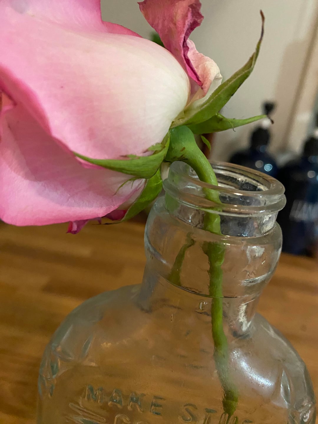 Hallo, wie der Titel schon sagt, stammt diese Rose aus einem Blumenstrauß von der Beerdigung meiner Oma. Sie liebte Rosa. Dies war das, was mir gegeben wurde. Ich weiß, dass der Stängel direkt unter der Blüte biegsam und schwach ist, aber der Rest des Stängels sieht stark aus, zumindest soweit ich weiß.