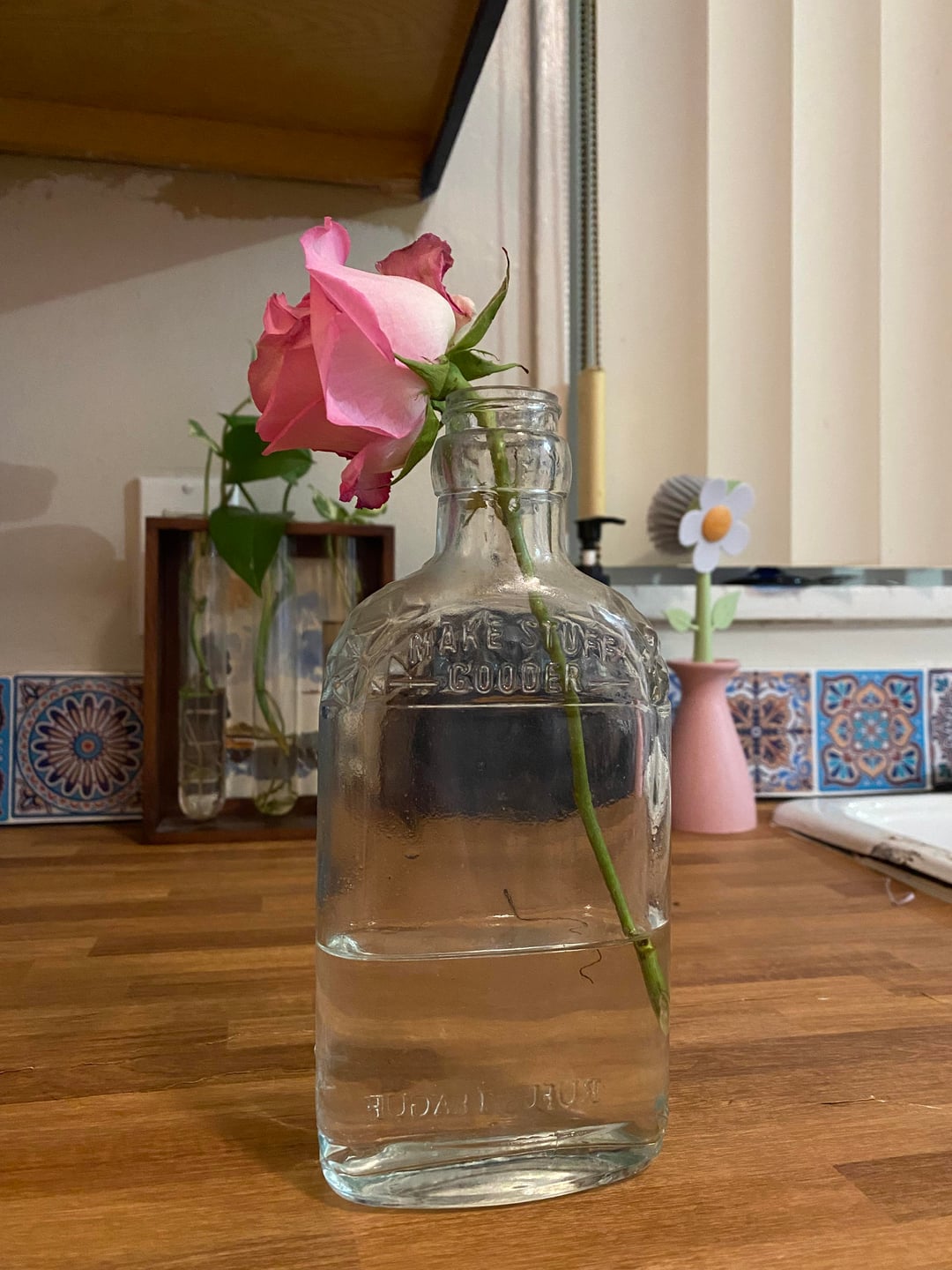 Ich bin kein Florist oder Pflanzenexperte, aber ich habe (einfache) Pflanzen mit Wasser vermehrt und bin lernwillig und begierig. Ich würde diese Rose gerne aufstellen, damit meine Familie, wenn sie mich besucht, sehen kann, dass ein Stück Oma noch bei uns ist.