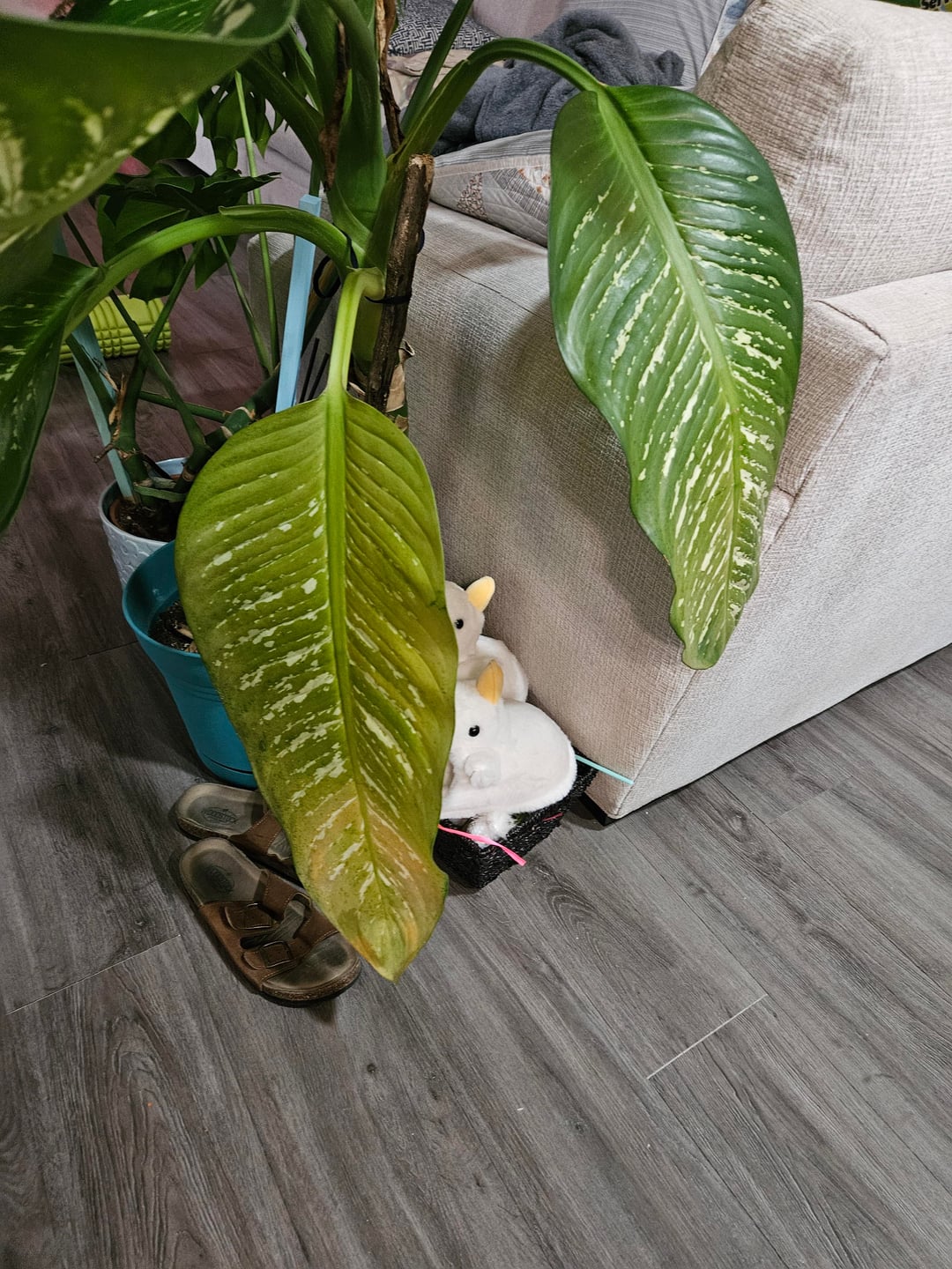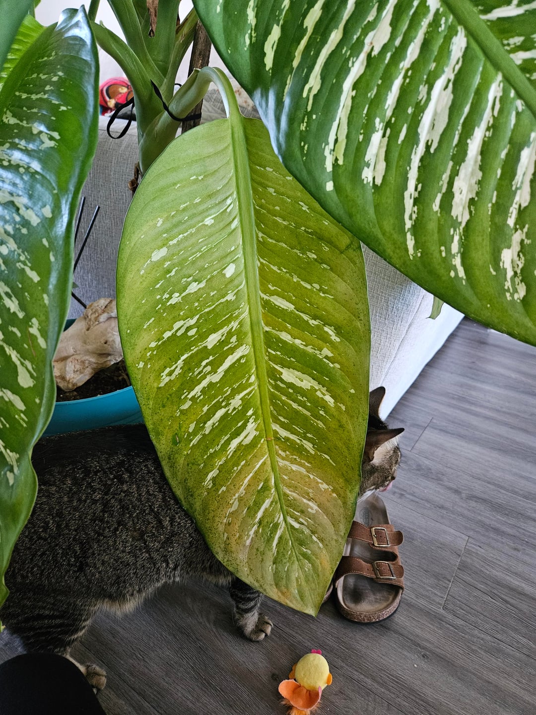 Ein Blatt wurde sehr gelb, und eines verfärbt sich langsam gelb. Ich gehe davon aus und bin mir ziemlich sicher, dass es daran liegt, dass ich sie nicht genug gegossen habe. Zur Kenntnis genommen und in Zukunft korrigiert. Aber. Soll ich das gelbe Blatt abschneiden und vielleicht auch das, das vergilbt?