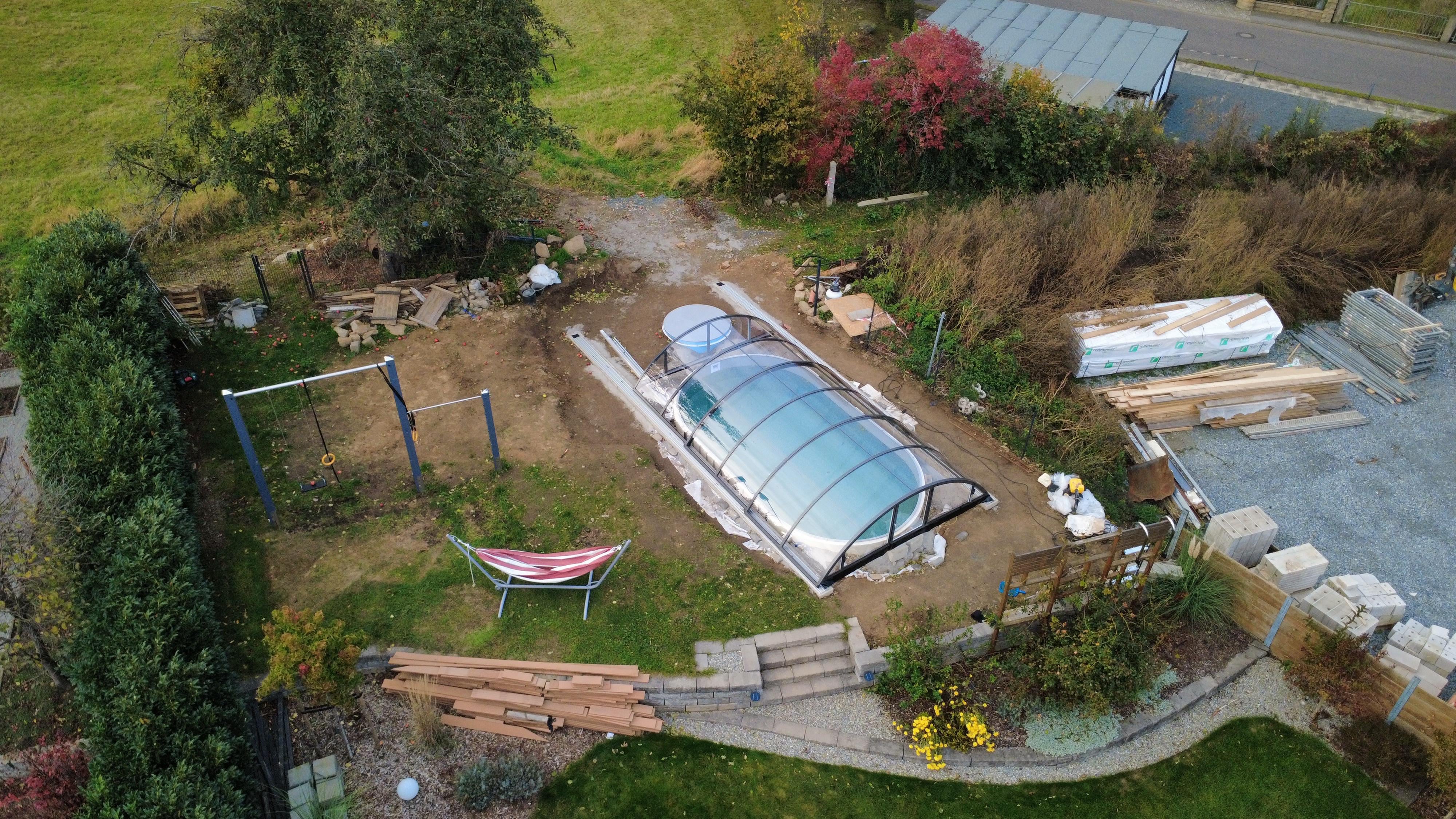 Vorher stand dort ein Aufstellpool und war umrandet von einer WPC Terrasse, die WPC Bretter würde ich auch gern wieder verwenden. Die Frage ist macht man ne Mischung aus WPC und Terrassenplatten. Welche Bepflanzung wäre es sinnvoll. Wo könnte man ne Umkleidekabine vielleicht platzieren?