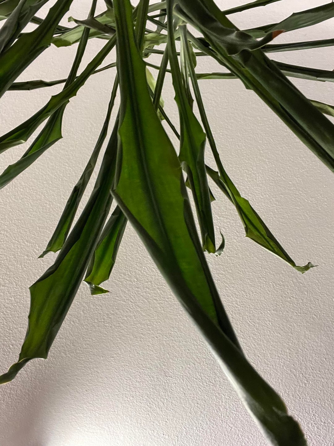 hab vorhin diese Dracaena, die bei Kleinanzeigen zu Verschenken war, abgeholt. Ich weiß leider nicht welche Drachenbaum-Art Sie genau ist. Wie im Bild zu sehen ist, sind ihre Blätter nach innen gewölbt.