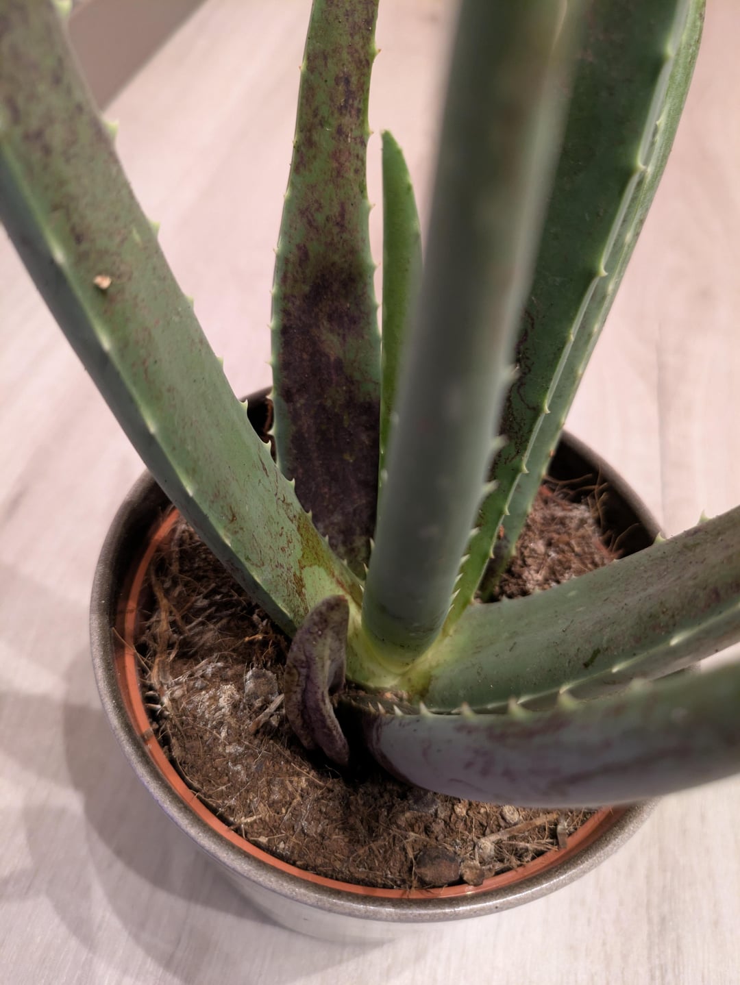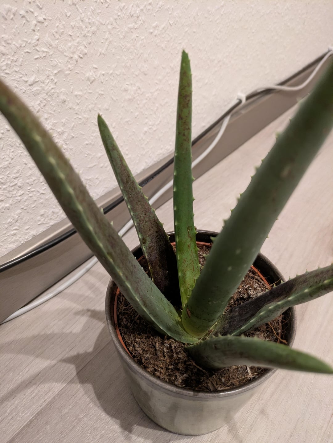 Hi zusammen, unsere Aloe Vera hat so ganz stark punktierte braune Flecken. Woran kann das liegen? Von: Reptiloid_92