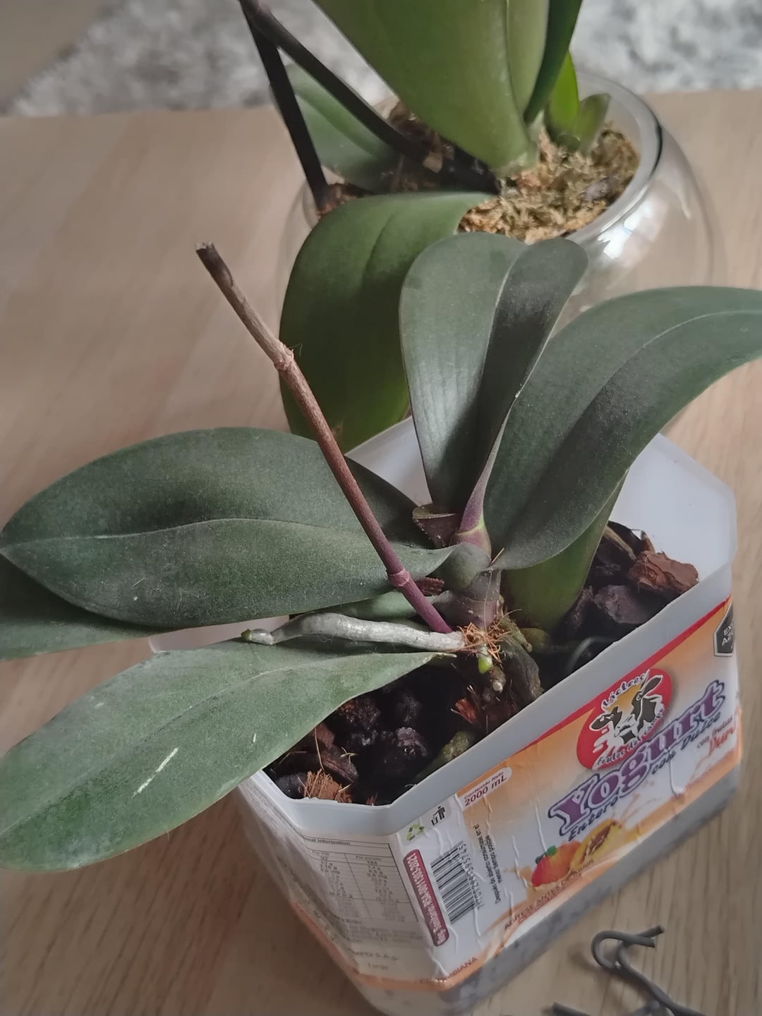 Dies ist eine Schmetterlingsorchidee, die ich mit 2 Blüten erhalten habe, und dann blühten weitere 4, dann erlebte sie ihre erste Blüte und ich schnitt den Stiel über der ersten Zwiebel ab, aber nach zwei Monaten sieht der Stiel komisch aus und sieht aus, als würde er austrocknen. Gibt es einen Rat, was ich tun kann?