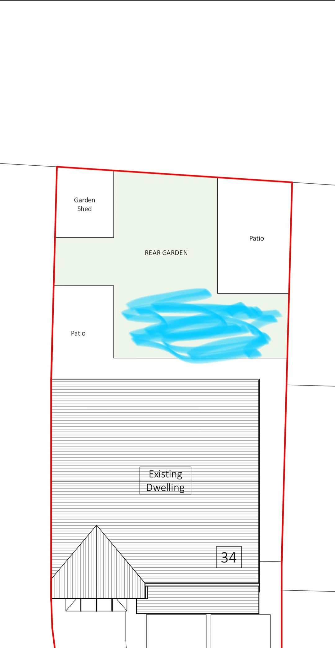 Ich habe vor, vor der langfristigen Planung etwas Entwässerung anzubringen, um hier hoffentlich Abhilfe zu schaffen. Wir haben Glück, dass es im hinteren Teil des Gartens ein Niemandsland mit vielen Bäumen und Sträuchern gibt, sodass das Wasser in diesen Bereich abfließen kann.