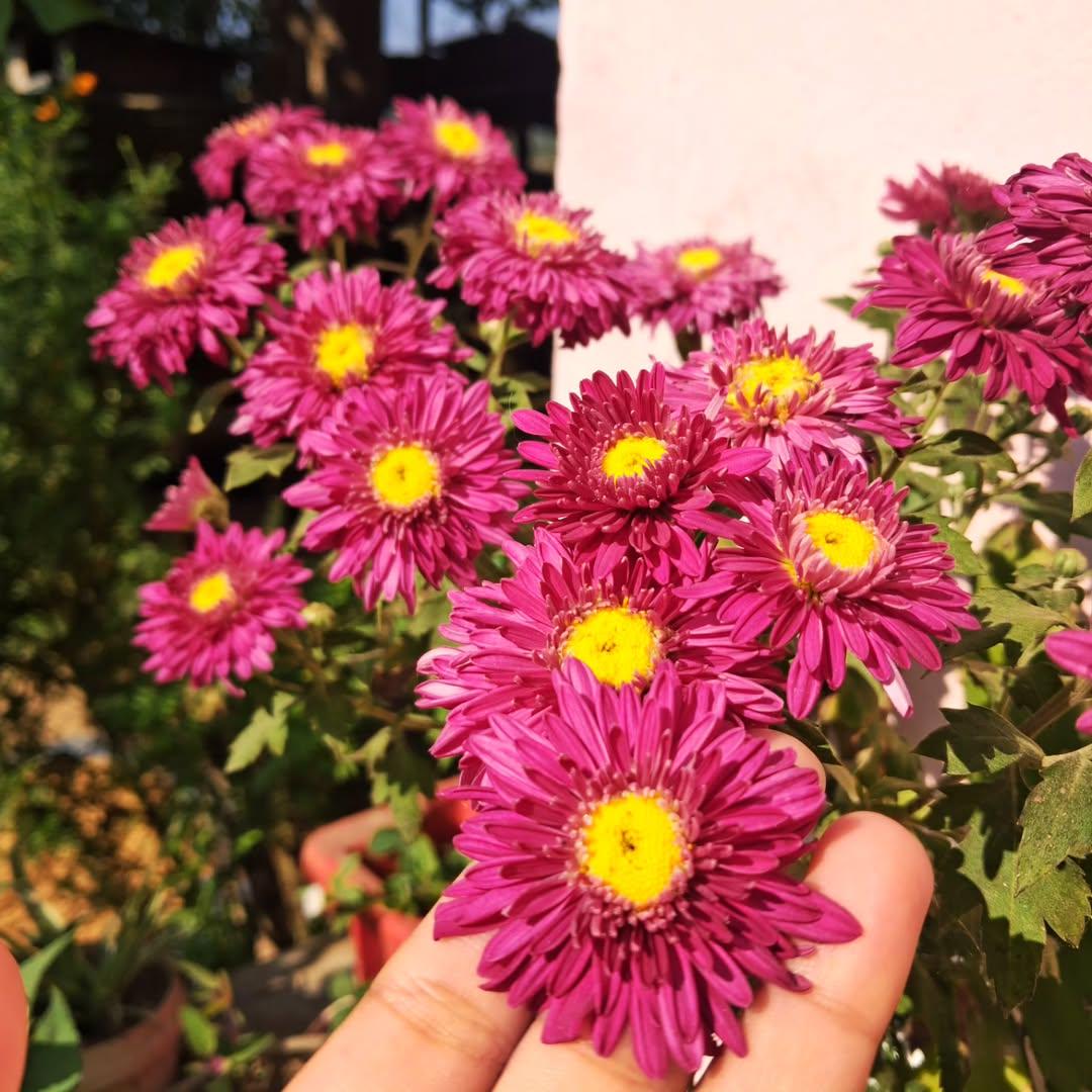 Meine gesunden magentafarbenen Chrysanthemen stehen in voller Blüte und zeigen satte Farben und Leben. Von: Automatic-Screen1291