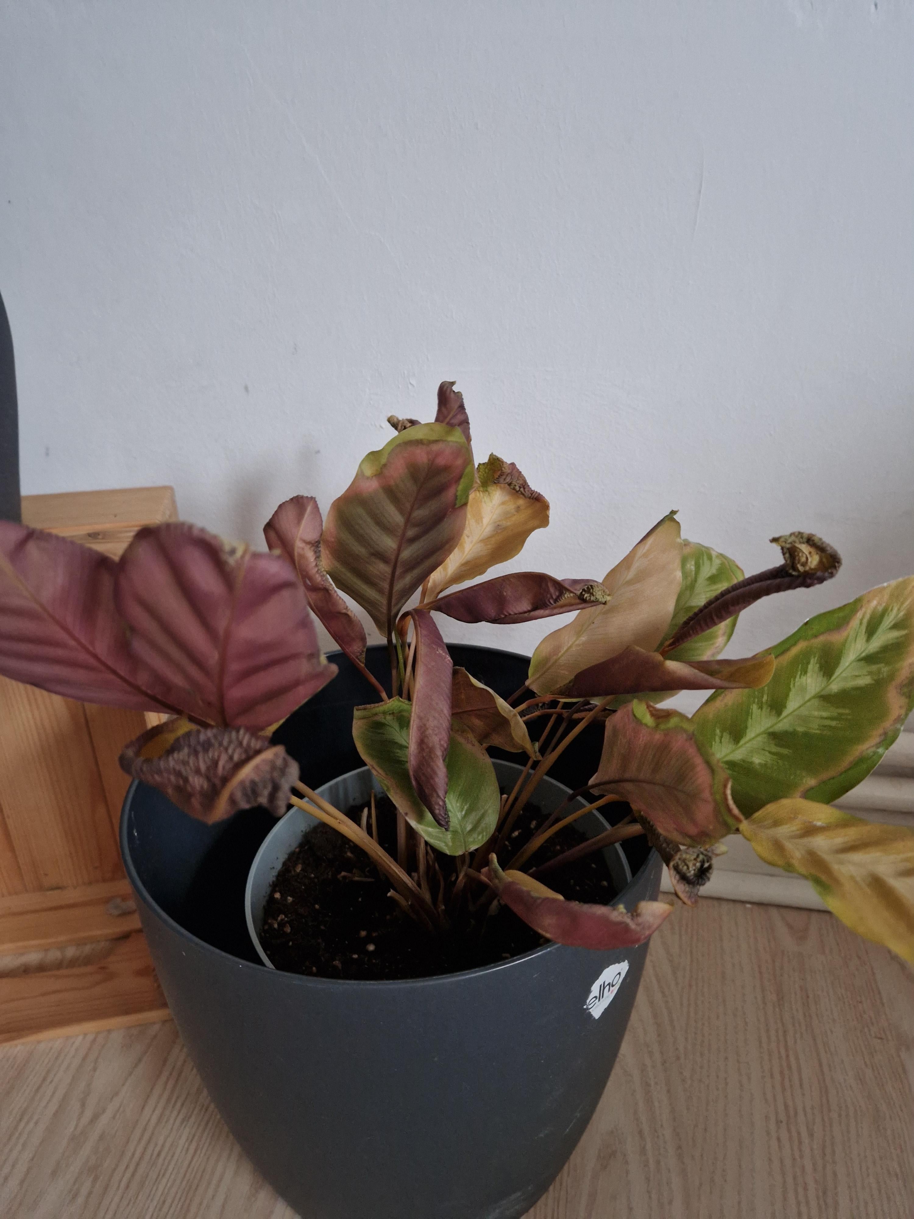 Ich habe auch eine Calathea und es ist mit Abstand die anspruchsvollste Pflanze in meiner Sammlung. Eine richtige Divia. Es ist halt eine tropische Pflanze, die es gerne feucht und warm mag. Die Kälte im Treppenhause war wohl eher nicht so gut. Bei mir im Wohnzimmer hat sie sich auch nie wohl gefühlt. Die Blätter wurden schnell runzelig und es wurden es kamen kaum welche nach. Trockene Heizungsluft jetzt im Winter mag sie überhaupt nicht. Aber seitdem sie im Bad steht, geht’s bergauf. Sie fängt jetzt sogar an zu blühen. Der Standort ist bei dieser Pflanze absolut essentiell.