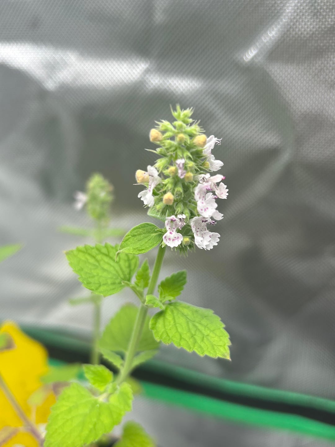 Dabei sollte es sich um eine Minzhybride namens Ananasminze handeln. Es zeigte nie seine Qualitäten, also dachte ich, vielleicht Apfelminze. Es hat geblüht und jetzt habe ich überhaupt keine Ahnung mehr.