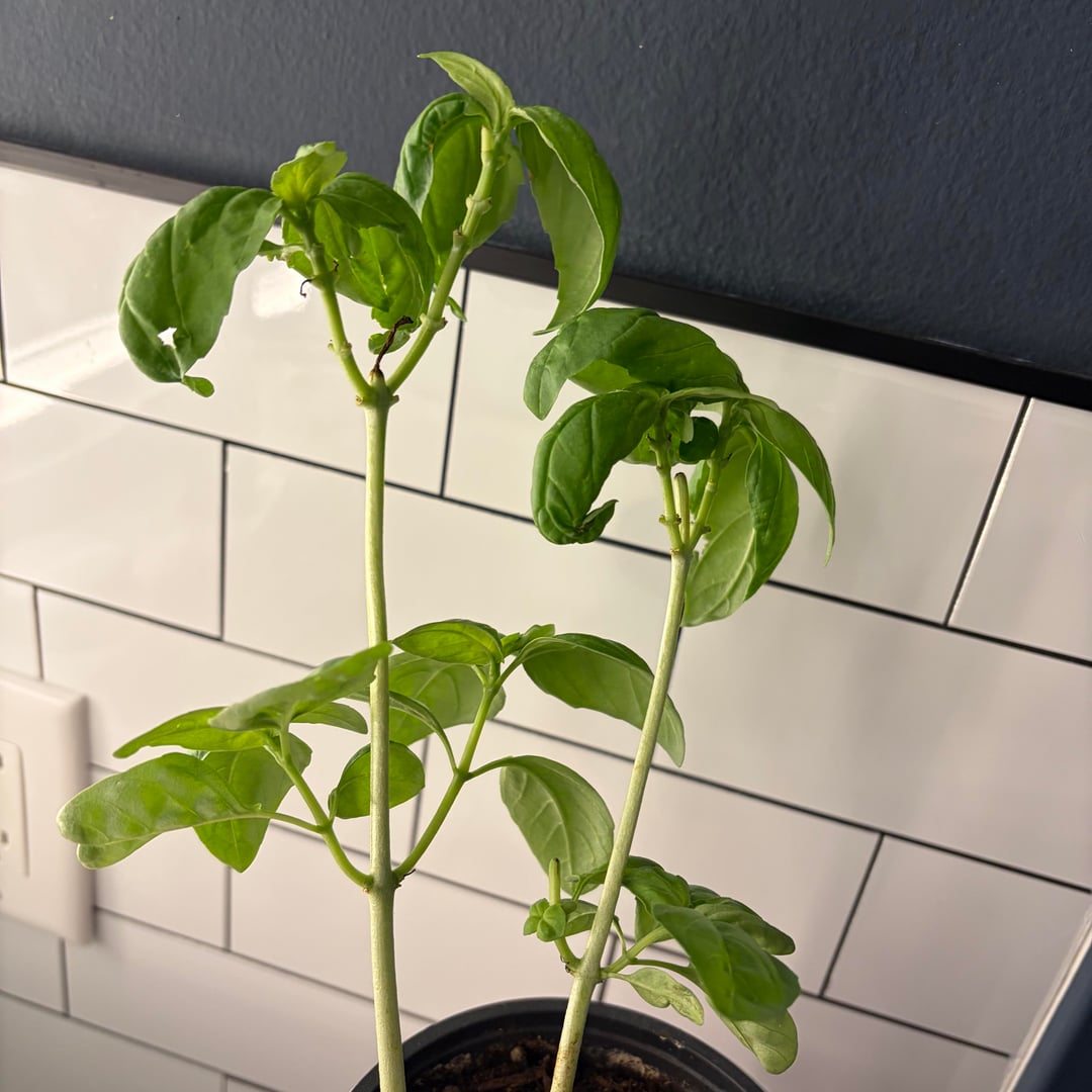 Als ich ihn kaufte, hatte dieser einen ganzen Haufen mehr Stiele und ich habe alle bis auf diese beiden herausgezupft. Ich habe gelesen, dass das Wachsen von 6-10 Stängeln in einem Topf dieser Größe nicht gut für ein gutes Wachstum ist, aber ich bin mir nicht sicher, ob das richtig ist?