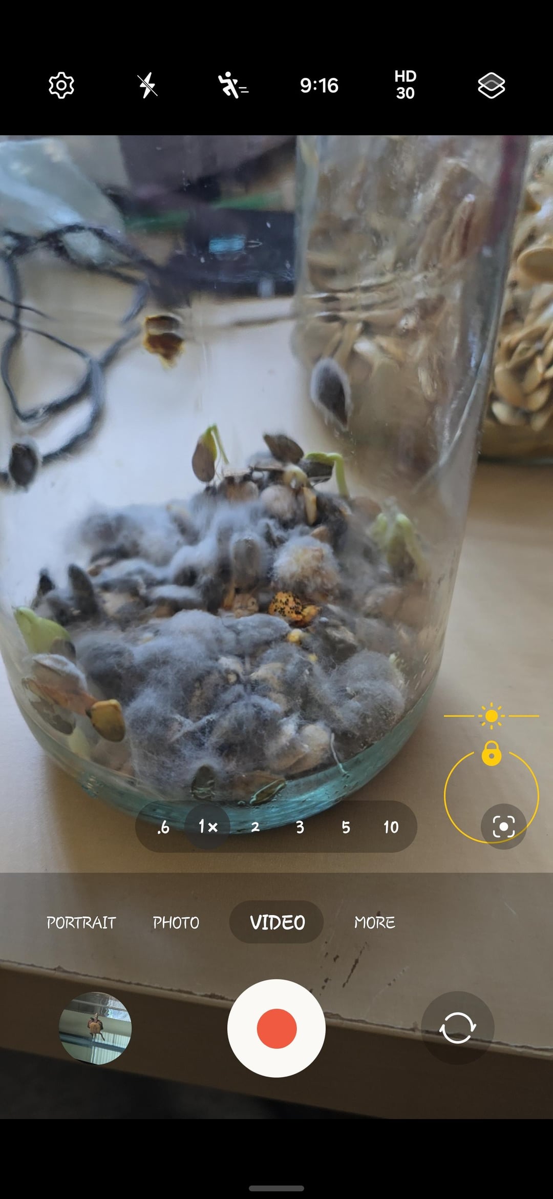 Es gibt roten, gelben, blauen, weißen, schwarzen Schimmel und Fuzzy/Flecken. (Sie waren trocken, daher weiß ich nicht, wie es im Glas so nass geworden ist. Ich vermute, dass die Samen innen nass waren?) Einige der Samen beginnen zu wachsen.