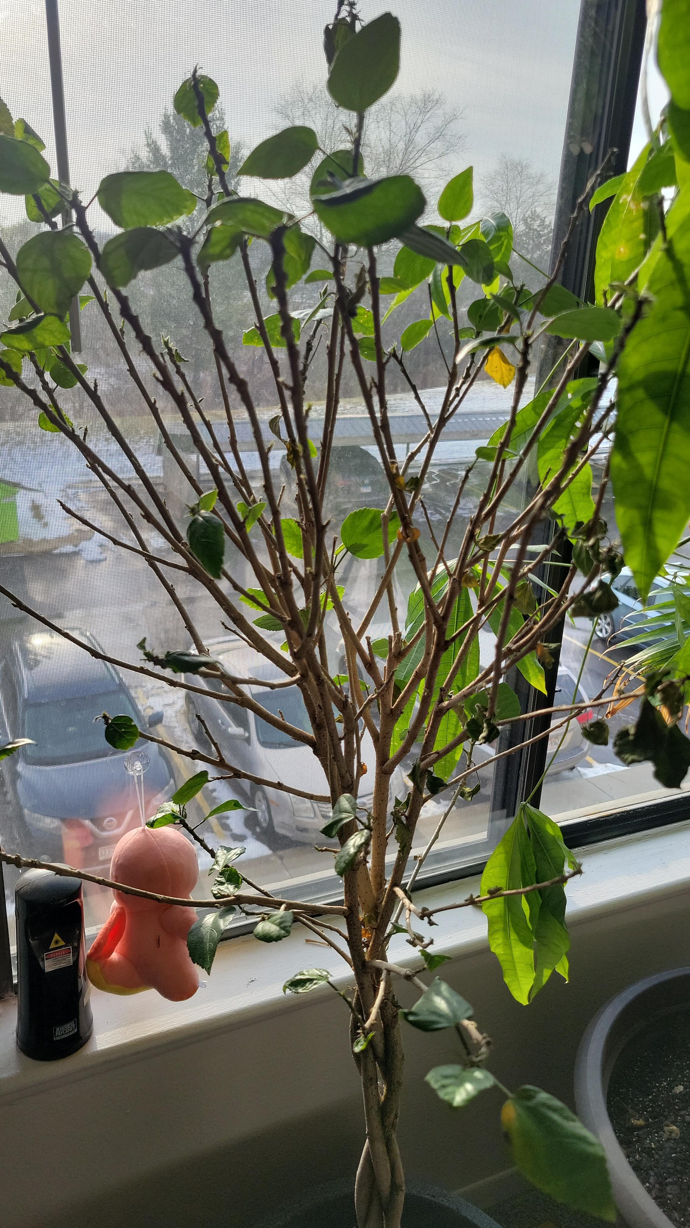 Ich hatte diesen Hibiskus die meiste Zeit dieses Jahres und er stand an einem ziemlich zugigen Standort. Und die Winterkälte hat einiges dagegen getan. Ich suche Rat, was ich tun sollte, um es wiederzubeleben. Ich habe mir einen besseren Ort ausgesucht, an dem es nicht viel Kaltluftzug gibt. Und habe es etwas gegossen. Und die verbliebenen Blätter sind wieder blüht. Aber gibt es irgendetwas, was ich tun sollte? Oder geben Sie ihm einfach mehr Zeit, sich zu erholen?