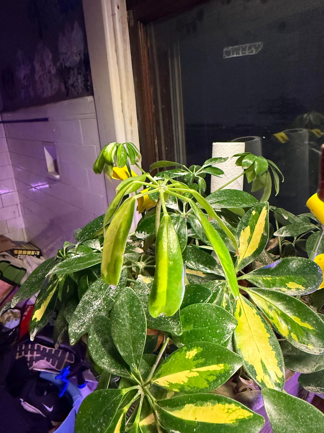 Ich hatte mit Mücken zu kämpfen, also werde ich in Woche 2 meinen Wasserverbrauch reduzieren, aber ich habe mir auch erst kürzlich einen Pflanzenständer mit Wachstumslampen zugelegt. Ist das zu wenig gegossen oder zu viel Licht? Das ist mir bei meinen Pflanzen noch nie passiert. (Das bräunliche Zeug auf den Blättern ist Zimt, den ich vermasselt habe)