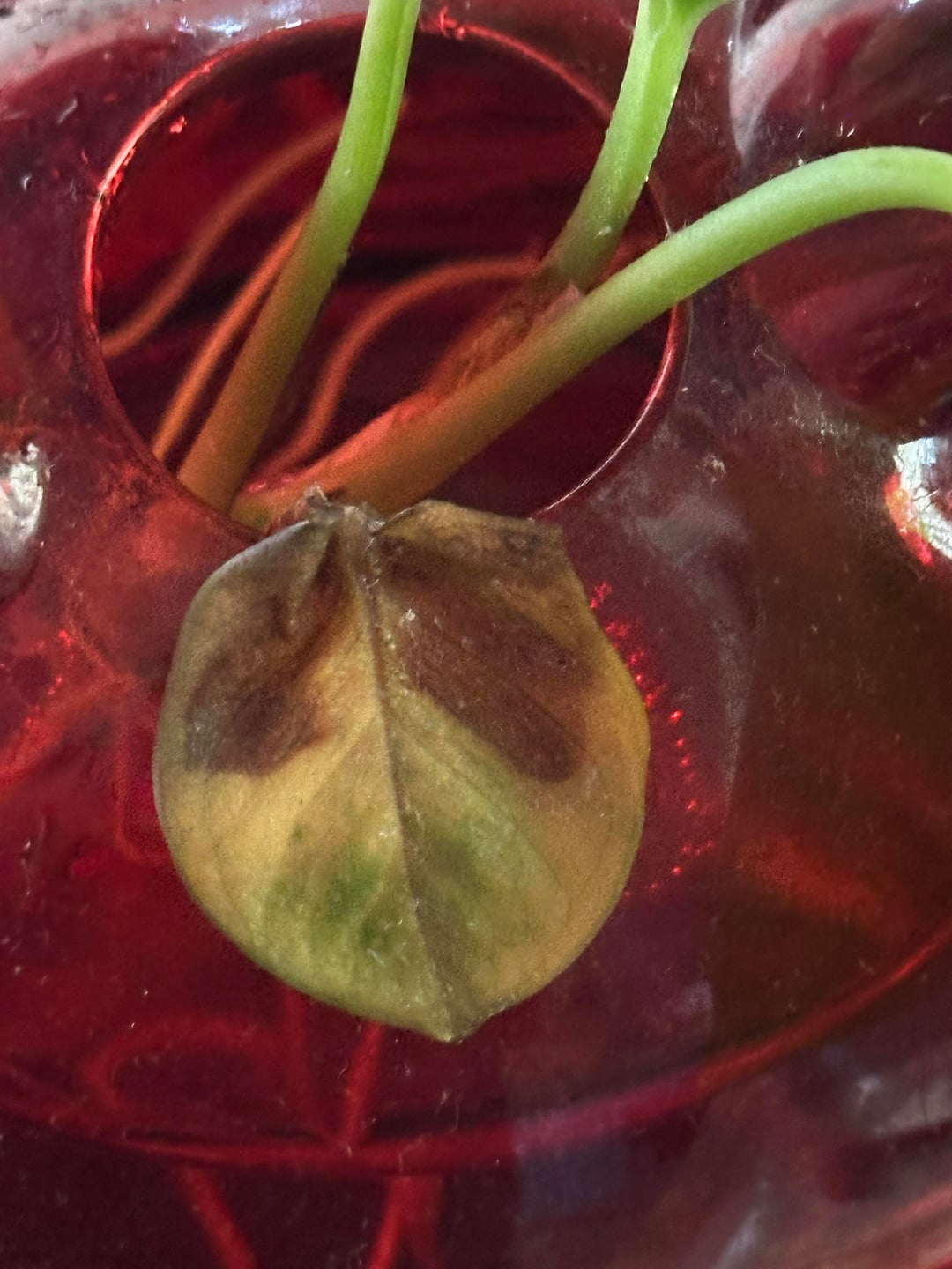 Ich habe kürzlich meine Pothos-Vermehrung in ein größeres Glas umgestellt und sie begann zu sterben. Ich bin mir nicht sicher, warum, aber die Wurzeln werden braun und ich habe zwei Blätter verloren. Ist mein neuer Container zu groß? Liegt es daran, dass es eine andere Farbe hat? Das ist das größte Glück, das ich je mit einem Pothos-Schnitt hatte, und ich möchte es nicht verlieren 😭