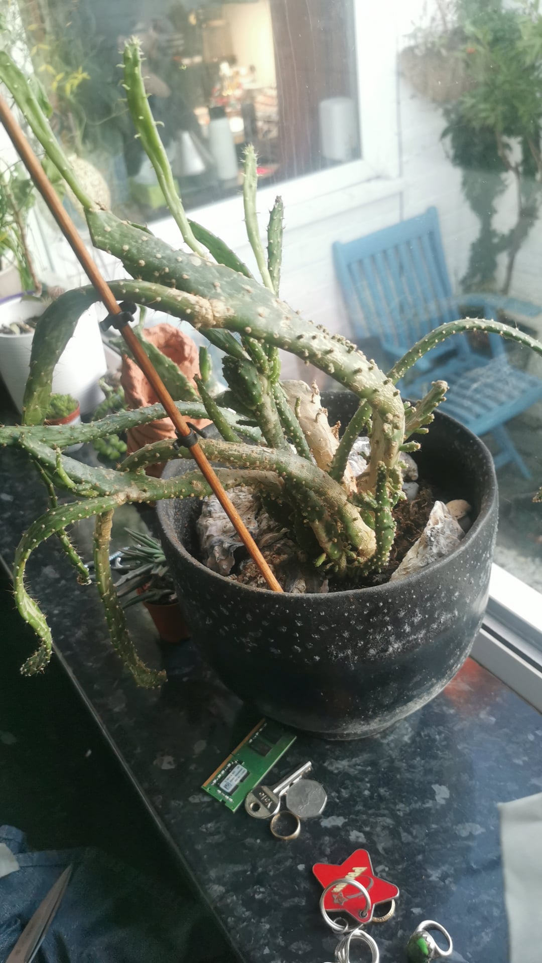 🌵 Habe diesen Kaktus vor 8 Jahren bekommen. In letzter Zeit sieht es etwas traurig und schlaff aus. Ich mache mir ein bisschen Sorgen, dass ich es langsam töte. Ich habe versucht, mithilfe der Google-Bildersuche herauszufinden, was daran falsch ist, aber jedes Mal, wenn ich ein Bild aus einem anderen Blickwinkel mache, erhalte ich einen anderen Kaktus und andere Ratschläge. Hat jemand irgendwelche Ideen? 🙏😊